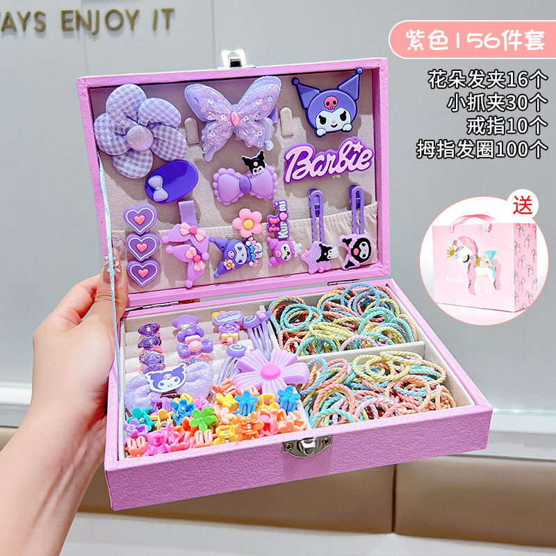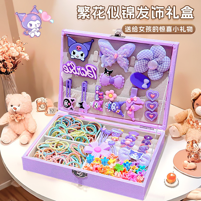 어린이 헤어 액세서리 선물 상자 세트 머리핀 어린 소녀 생일 선물 보석 상자 소녀 쿠로미 머리핀 머리 장식 여성