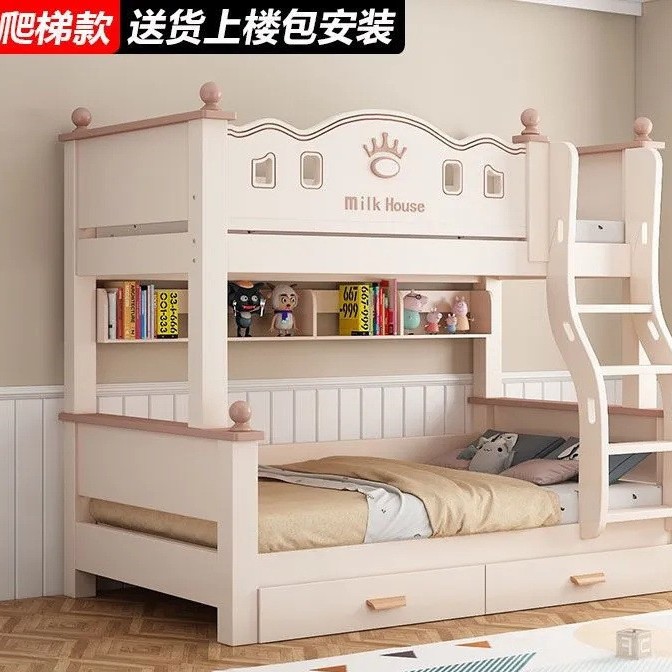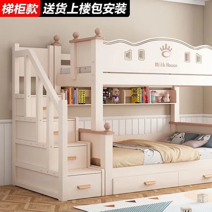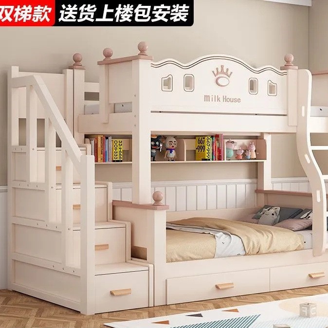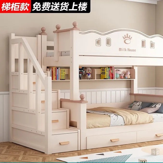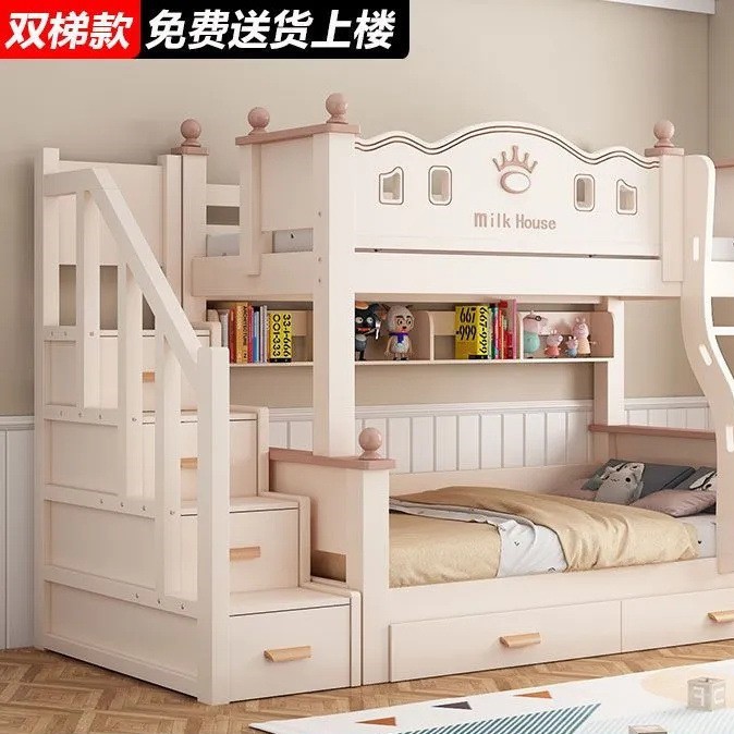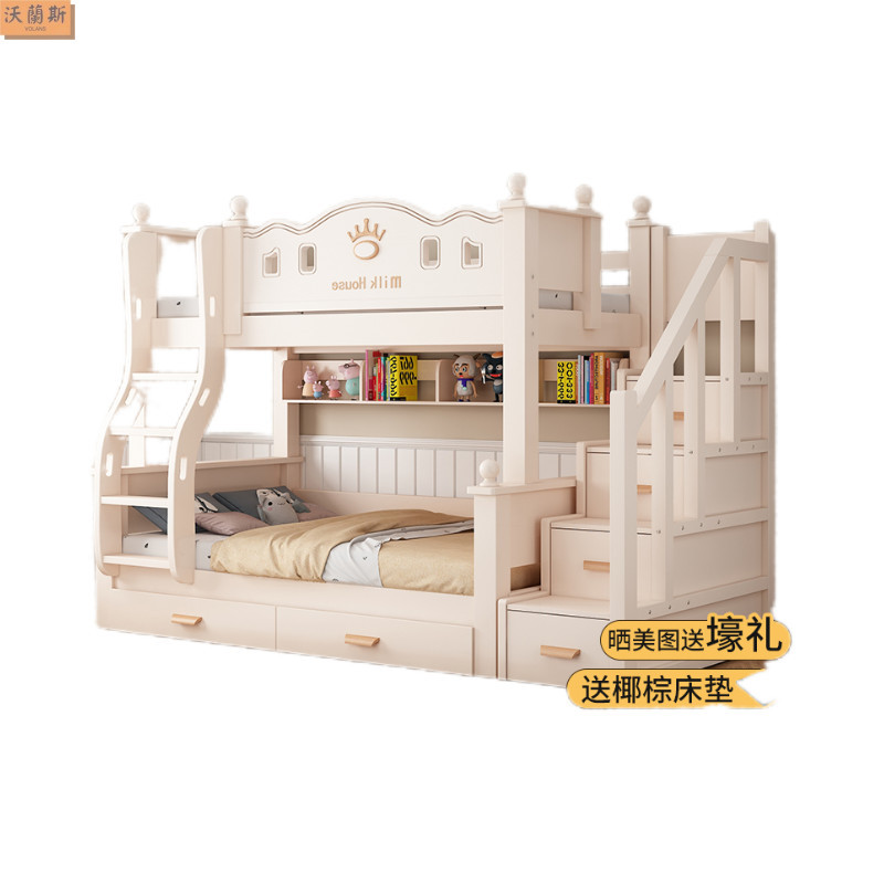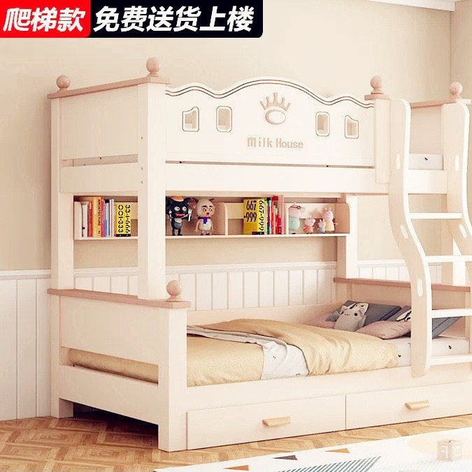 • 벚나무 이중 사다리 모델에는 위층으로 올라갈 수 있는 매트리스 + 책장 + 이중 서랍 가방이 함께 제공됩니다.