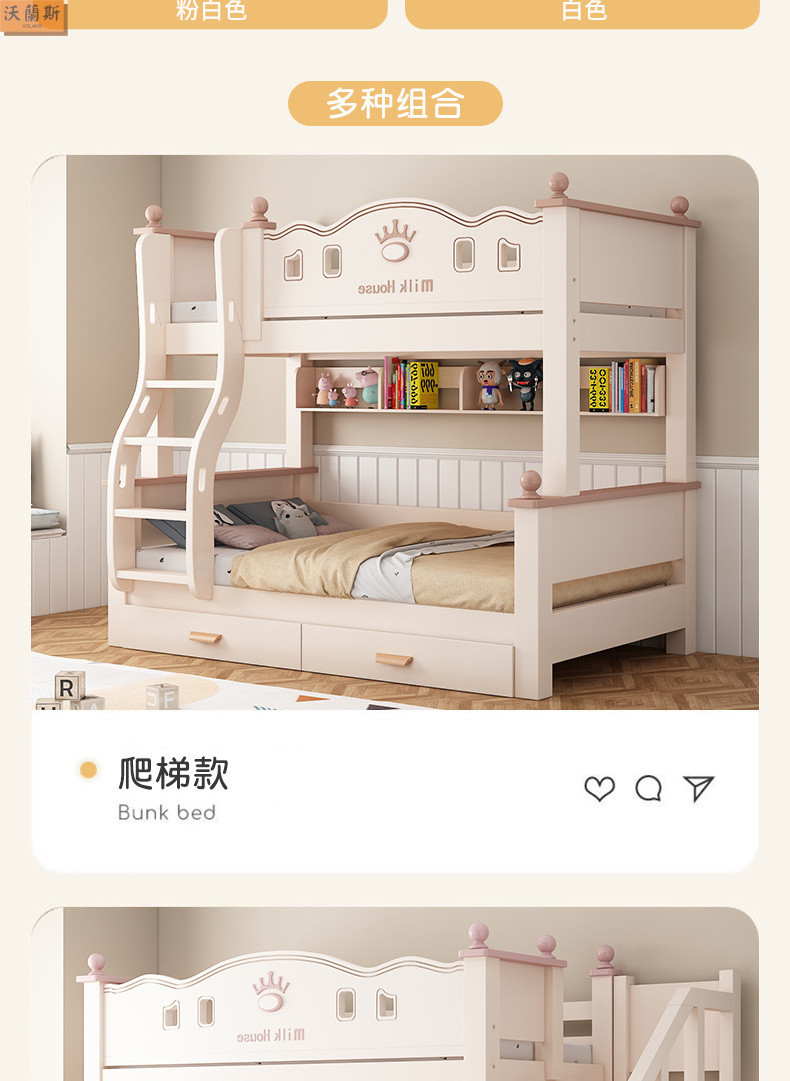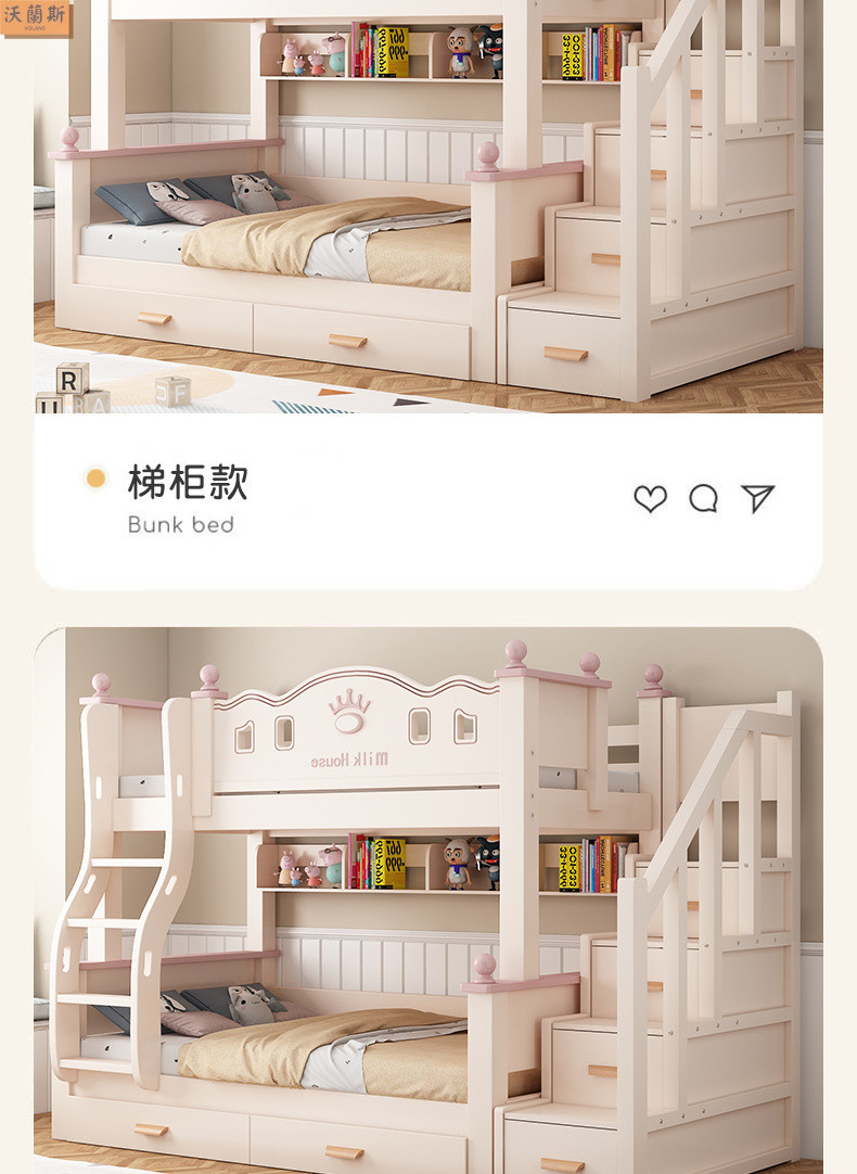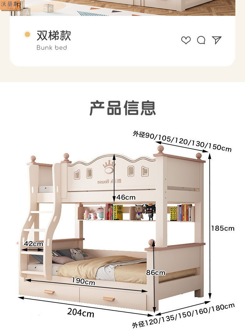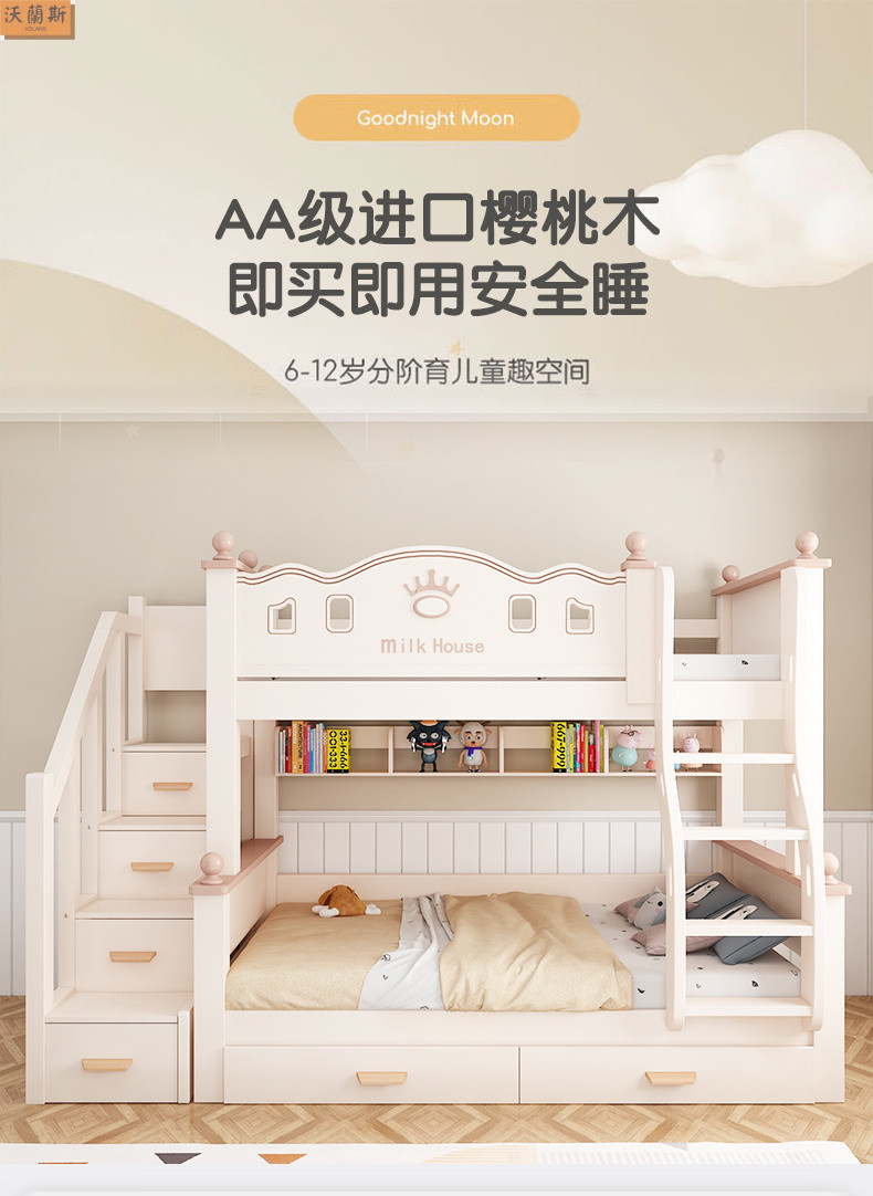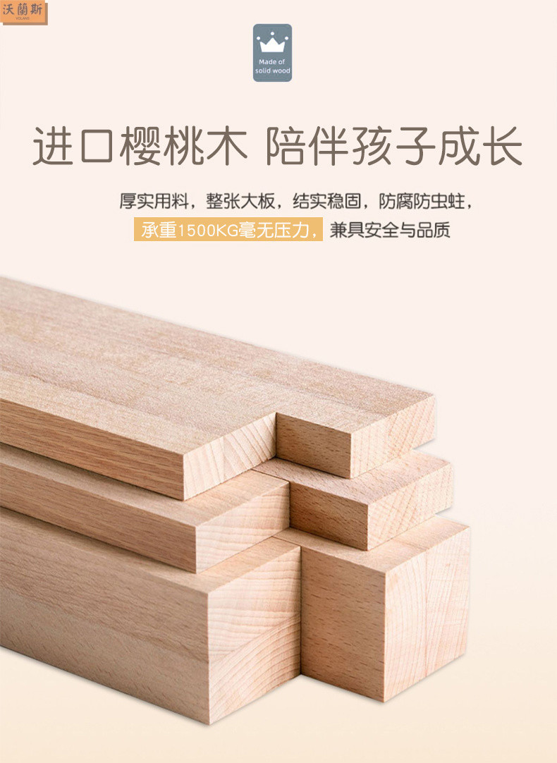 • 벚나무 사다리 모델에는 위아래 매트리스 + 책장 + 이중 서랍 가방 설치가 함께 제공됩니다.