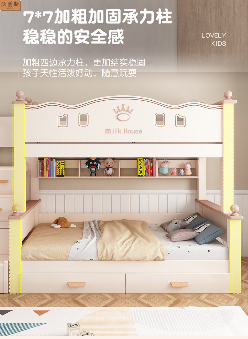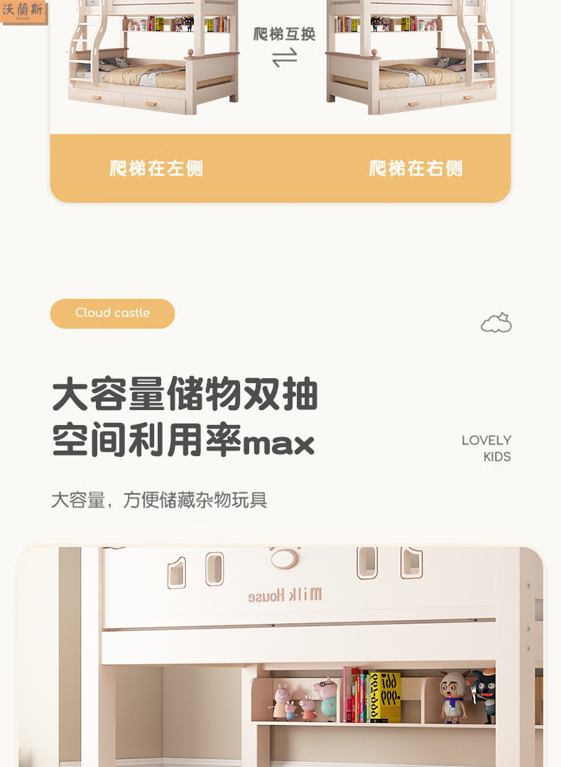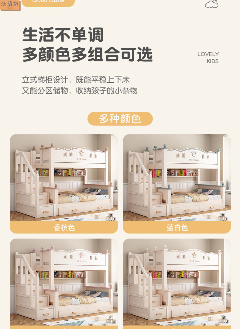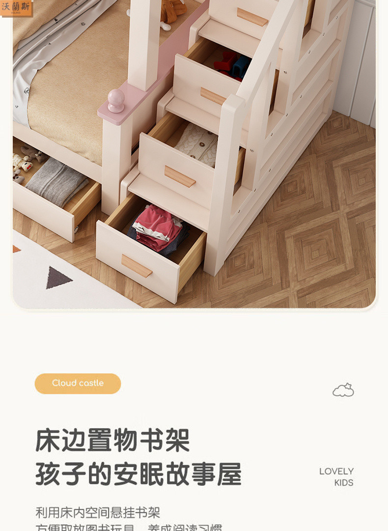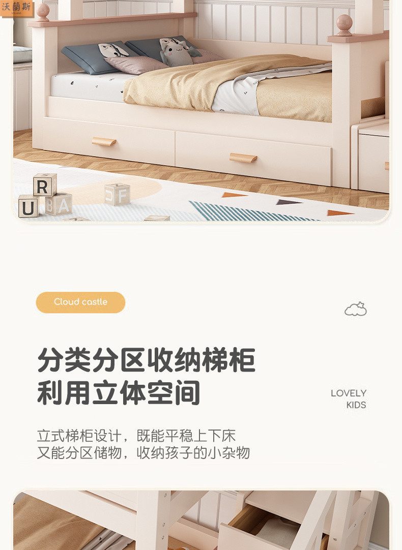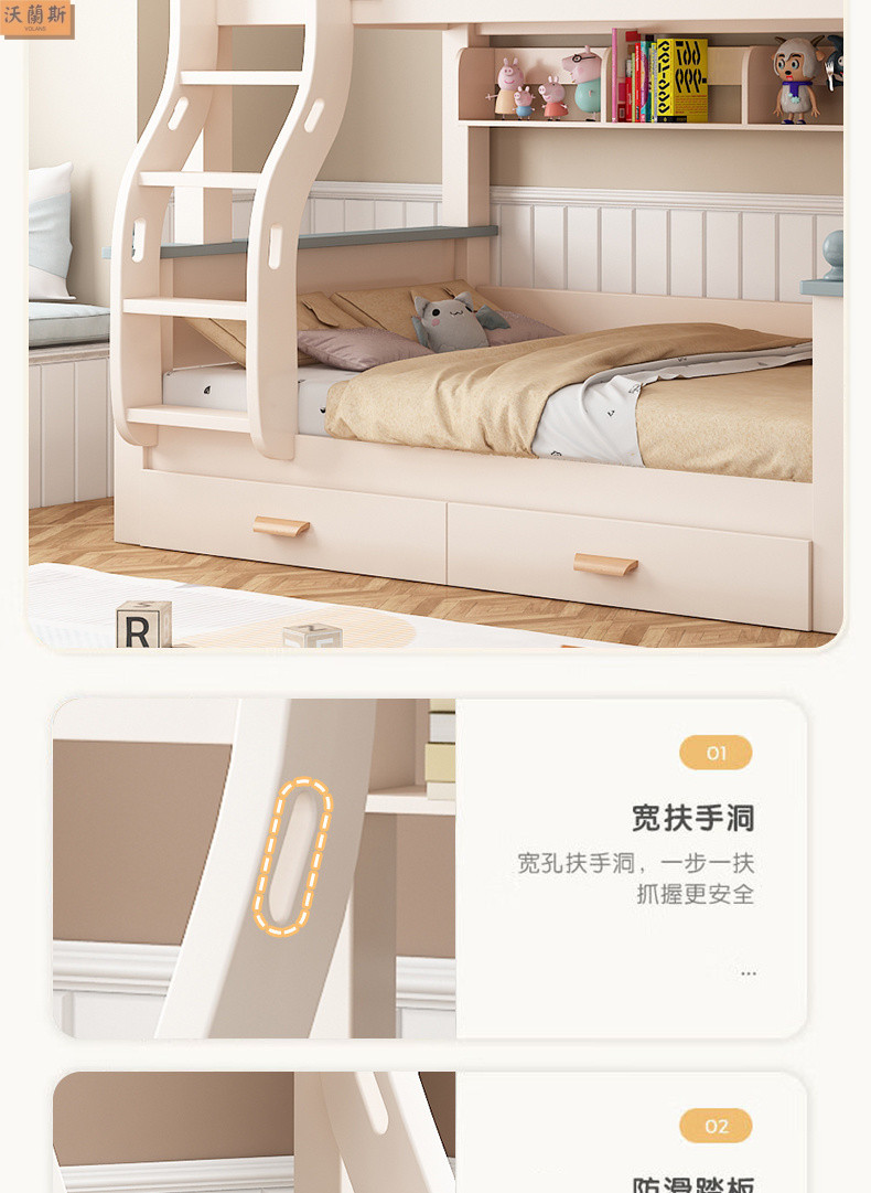 • 벚나무 사다리 모델에는 위아래 매트리스 + 책장 + 이중 서랍 가방 설치가 함께 제공됩니다.