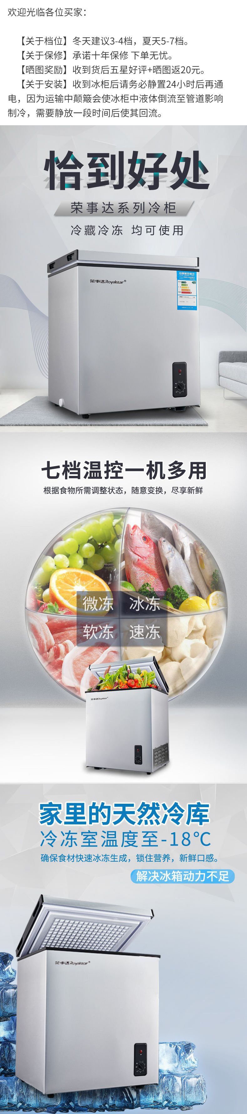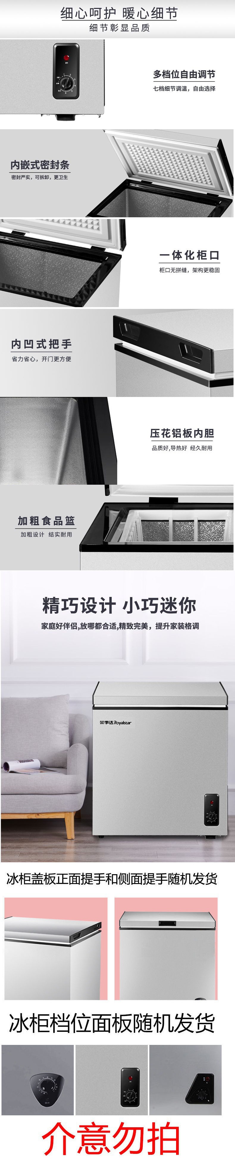Royalstar 소형 냉동고 소형 냉동고 가정용 대용량 상업용 수직 냉동고 겸용 에너지 절약형 미니스토어 가기