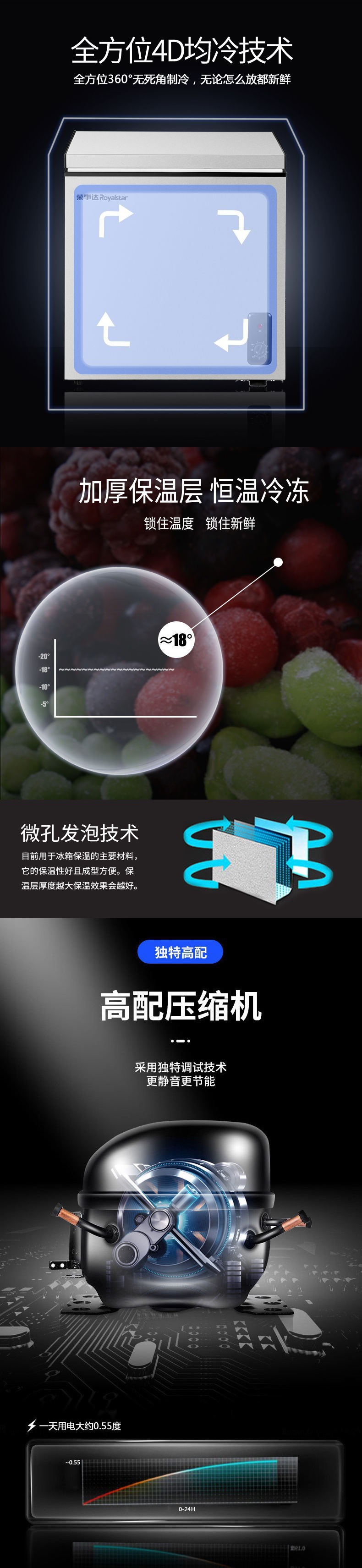 Royalstar 소형 냉동고 소형 냉동고 가정용 대용량 상업용 수직 냉동고 겸용 에너지 절약형 미니