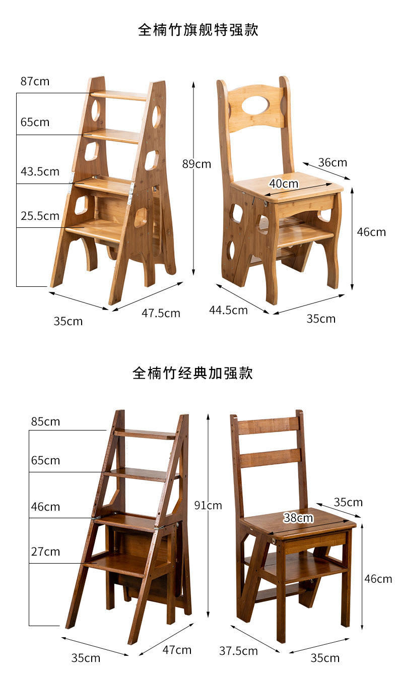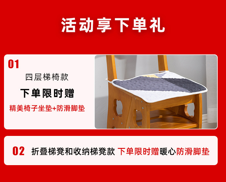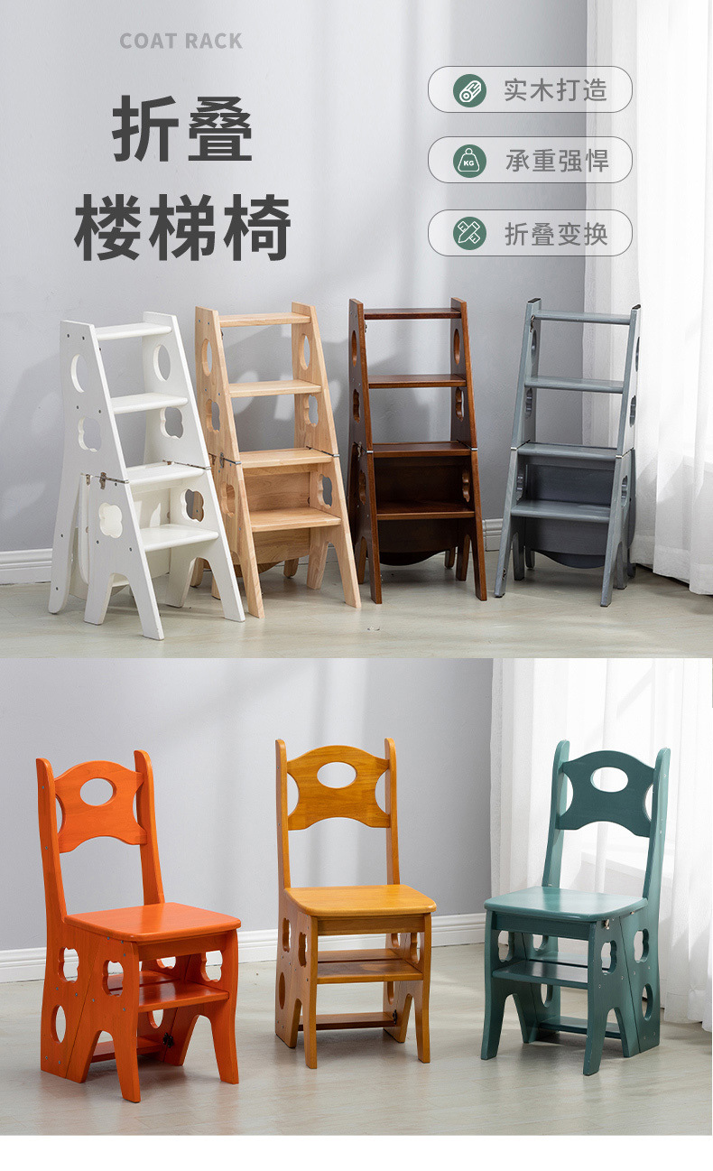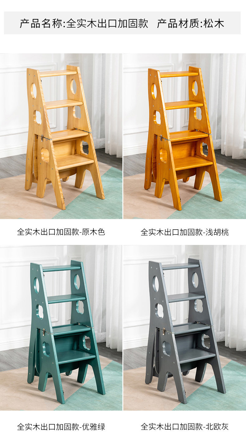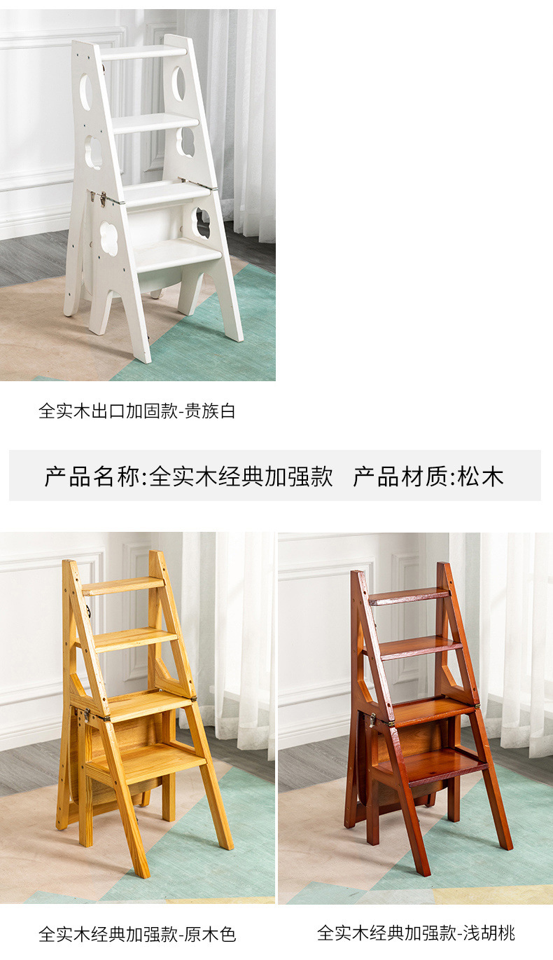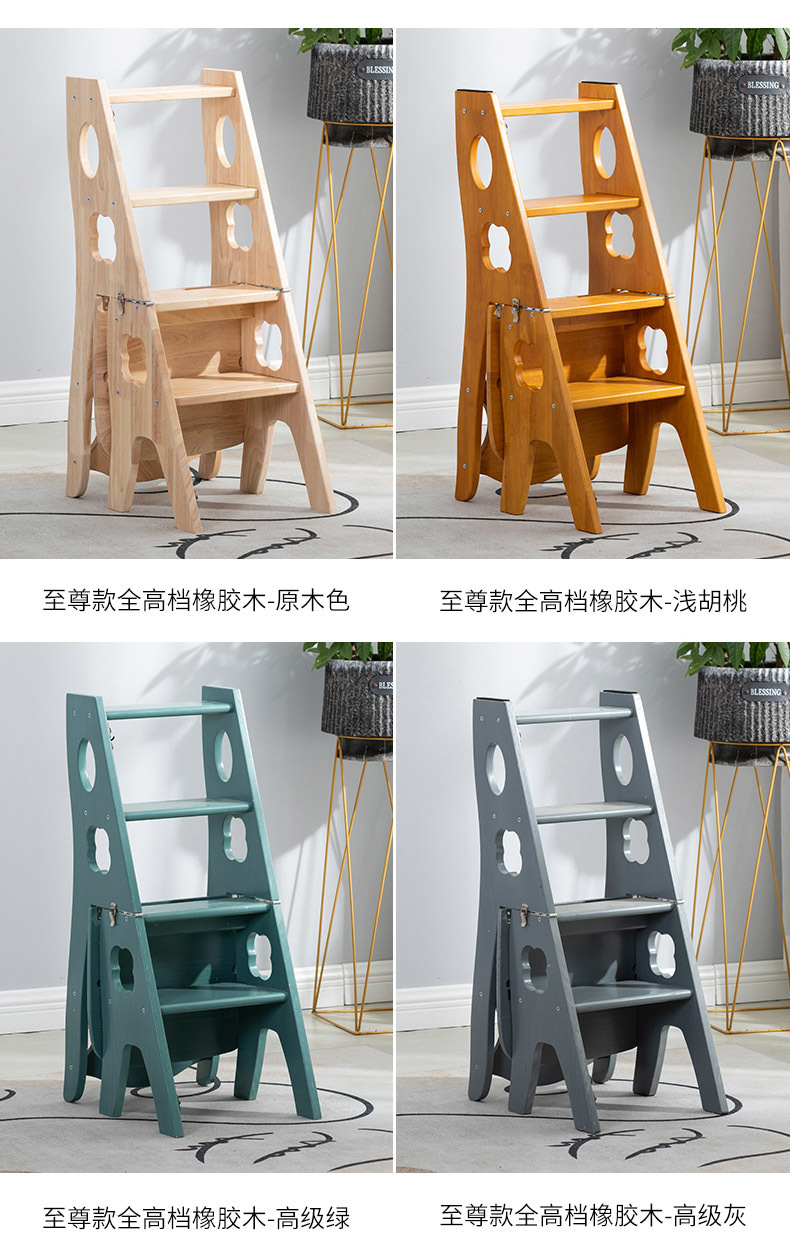 두꺼운 고무나무 원목 사다리 의자, 다기능 사다리 의자, 투인원 가정용 사다리, 중년 및 노년층을 위한 이중 목적 접이식 의자스토어 가기