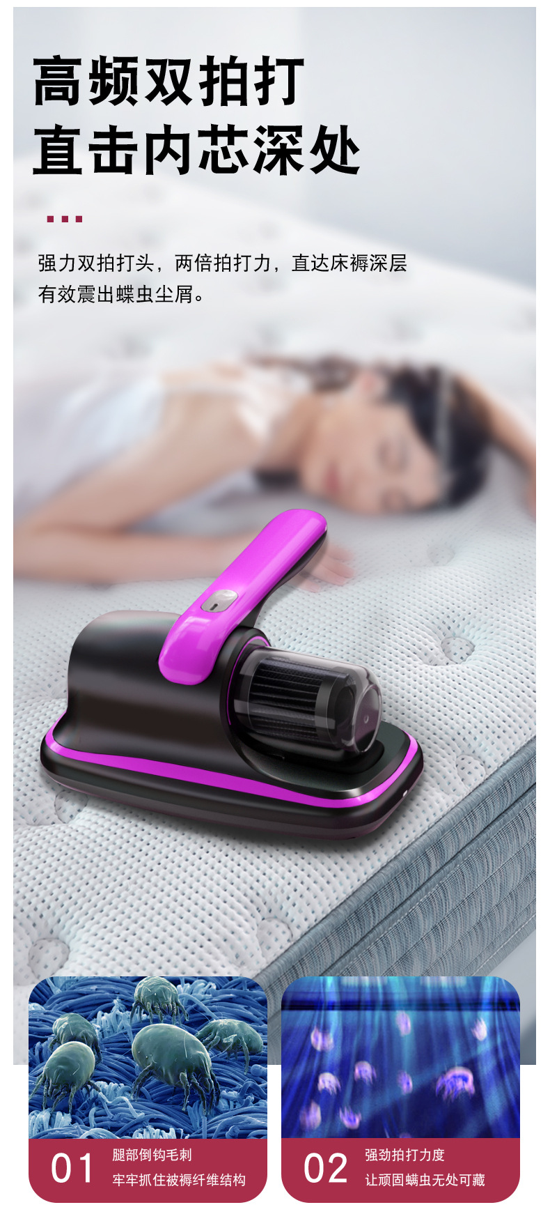 진드기 제거기 공장 도매 휴대용 무선 침대용 가정용 기숙사용 진공청소기 자외선 살균기 진드기 제거기