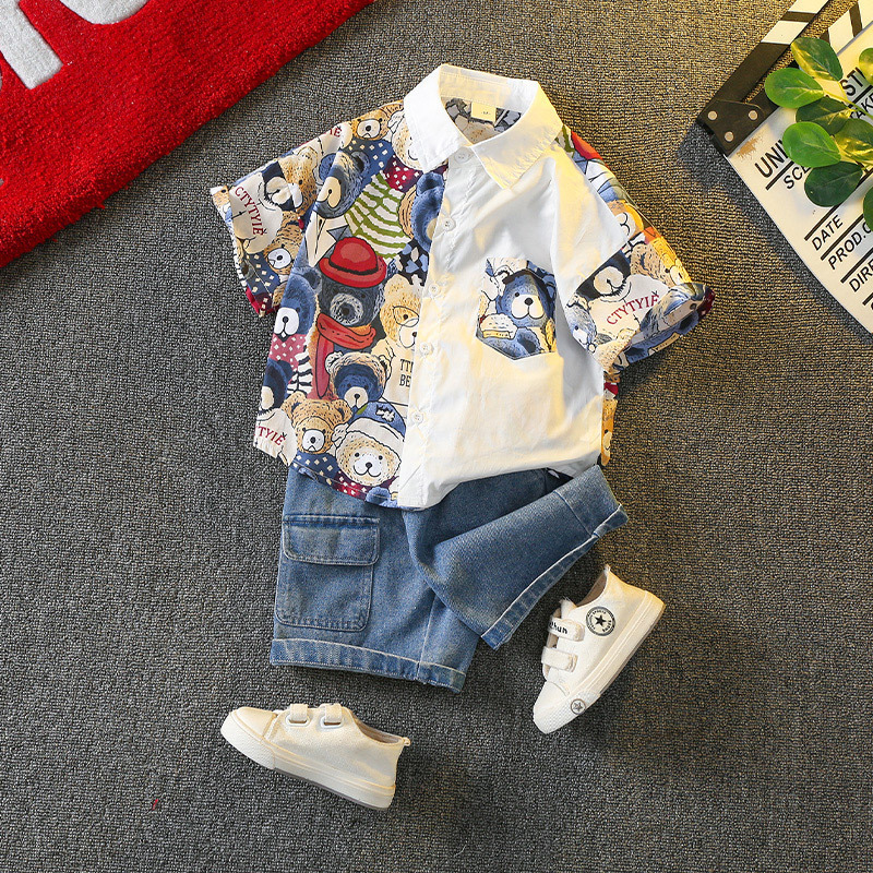 2025 새로운 소년 여름 셔츠 정장 유행 아기 반팔 옷 소년과 어린이 여름 잘 생긴 아동복스토어 가기