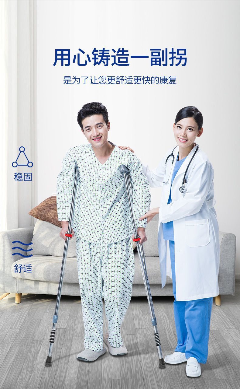 노인용 스테인레스 스틸 이중 지팡이, 미끄럼 방지 패드, 낙하 방지, 장애인을 위한 의료용 조절 가능한 겨드랑이 지팡이스토어 가기