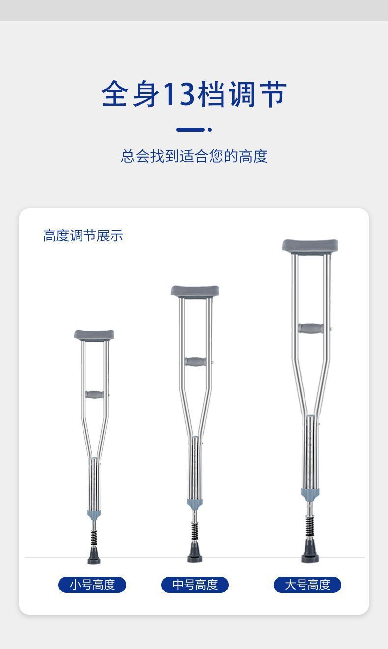 노인용 스테인레스 스틸 이중 지팡이, 미끄럼 방지 패드, 낙하 방지, 장애인을 위한 의료용 조절 가능한 겨드랑이 지팡이