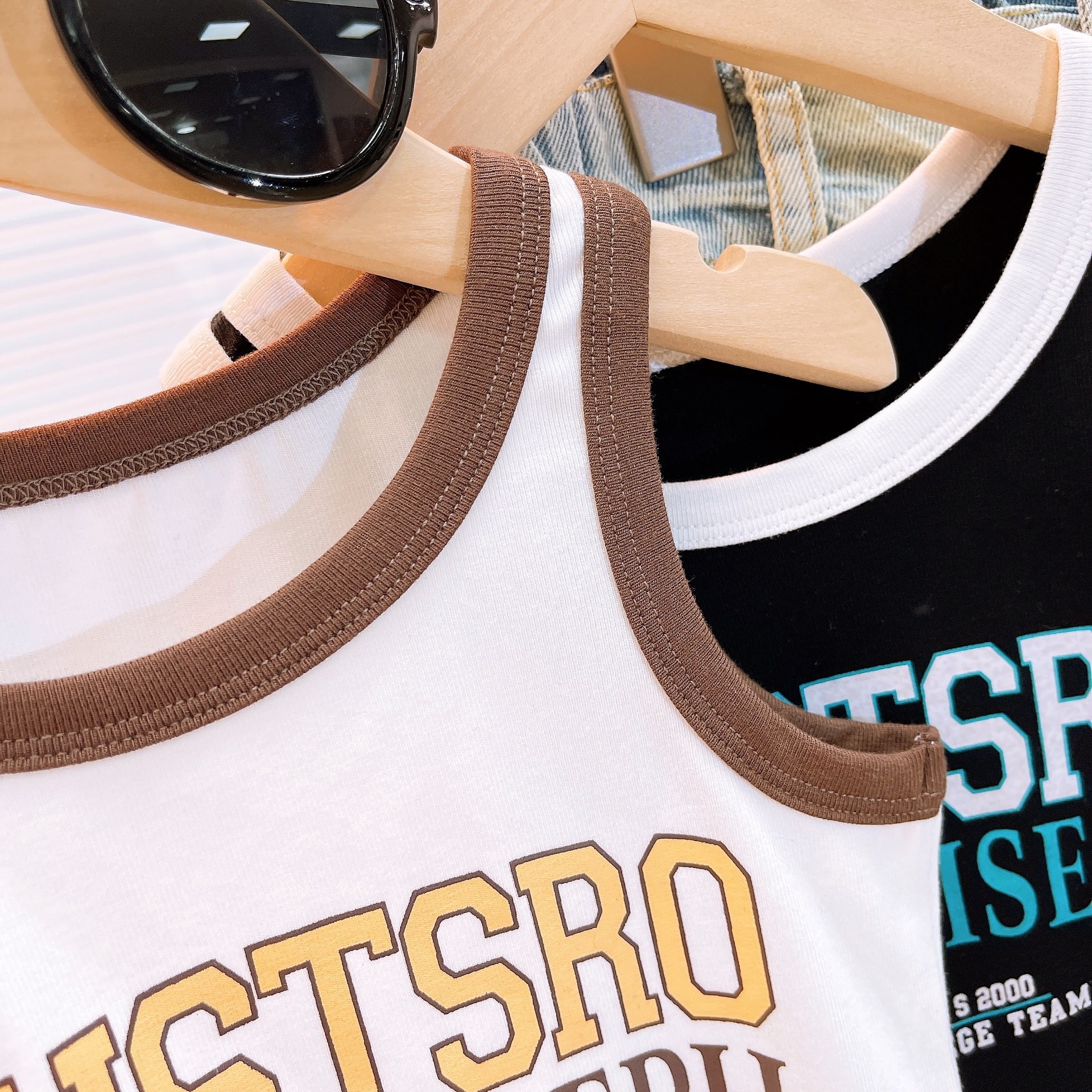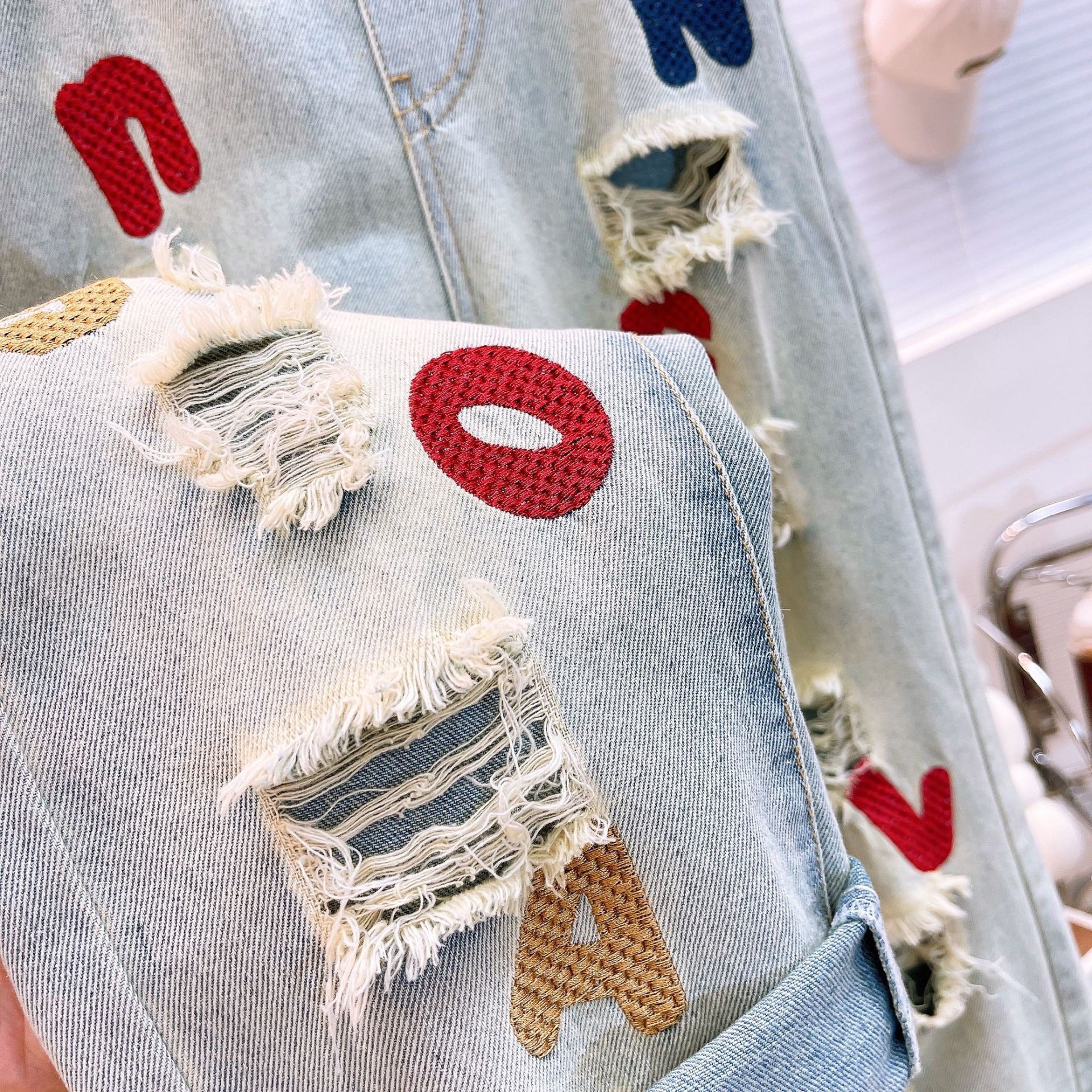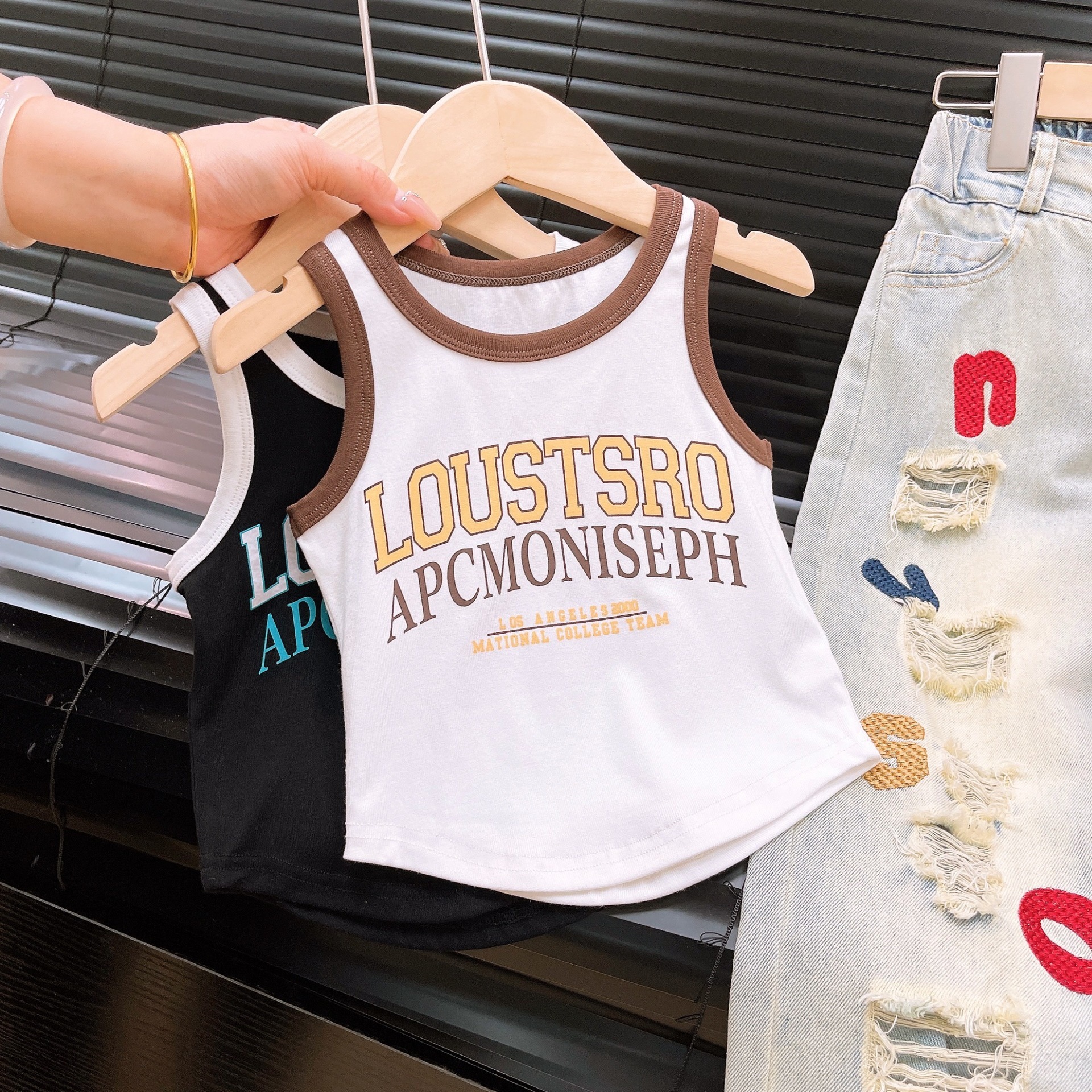 Ancorelala2025 봄 여름 여아 정장, 큰 아동 패션 티셔츠와 구멍 뚫린 문자 자수 청바지스토어 가기