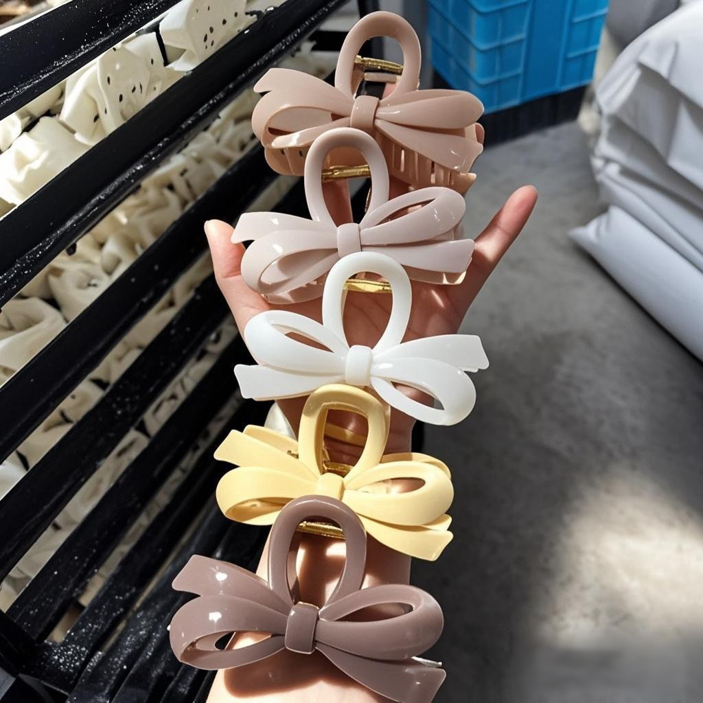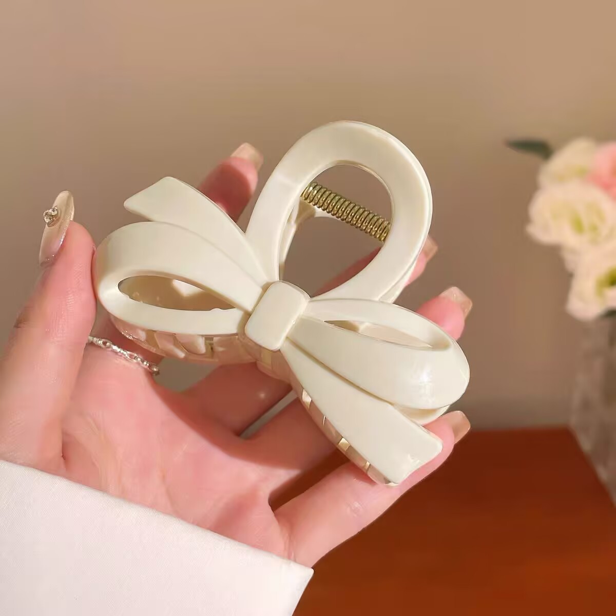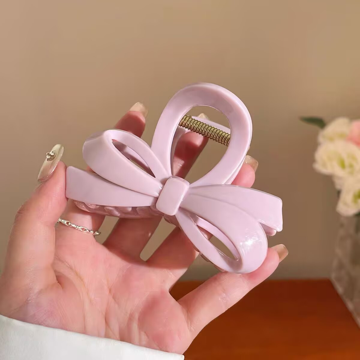 부드러운 하이 엔드 활 헤어핀 봄과 여름 하프 타이 그랩 클립 레트로 우유 설탕 컬러 헤어 액세서리 패션 우아한 상어 클립