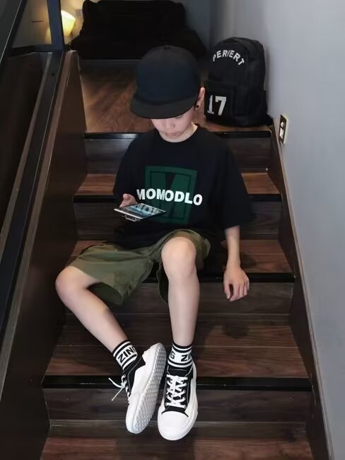 소년 티셔츠 반팔 어린이 여름 2024 새로운 잘 생긴 편지 인쇄 탑 소년 반팔 티셔츠스토어 가기