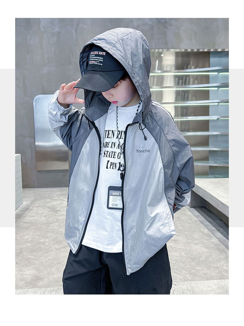 소년의 여름 태양 보호 의류 2025 새로운 스타일 여름 경량 소년 아이스 실크 어린이 태양 보호 의류 재킷