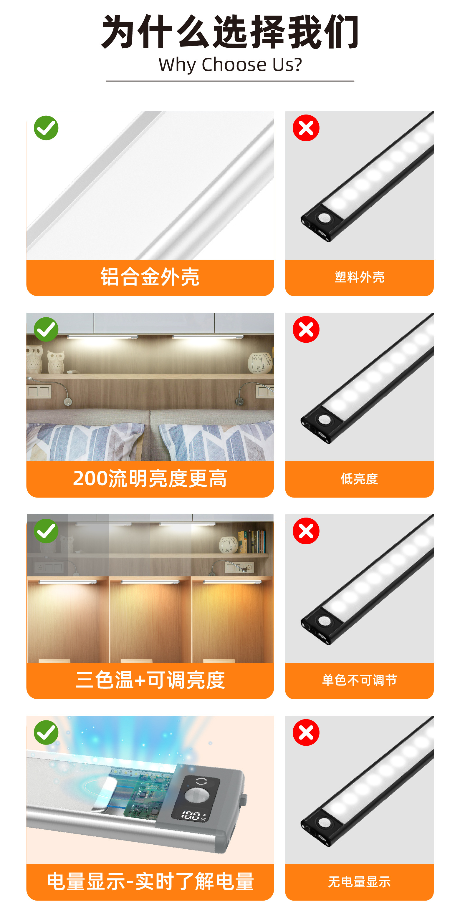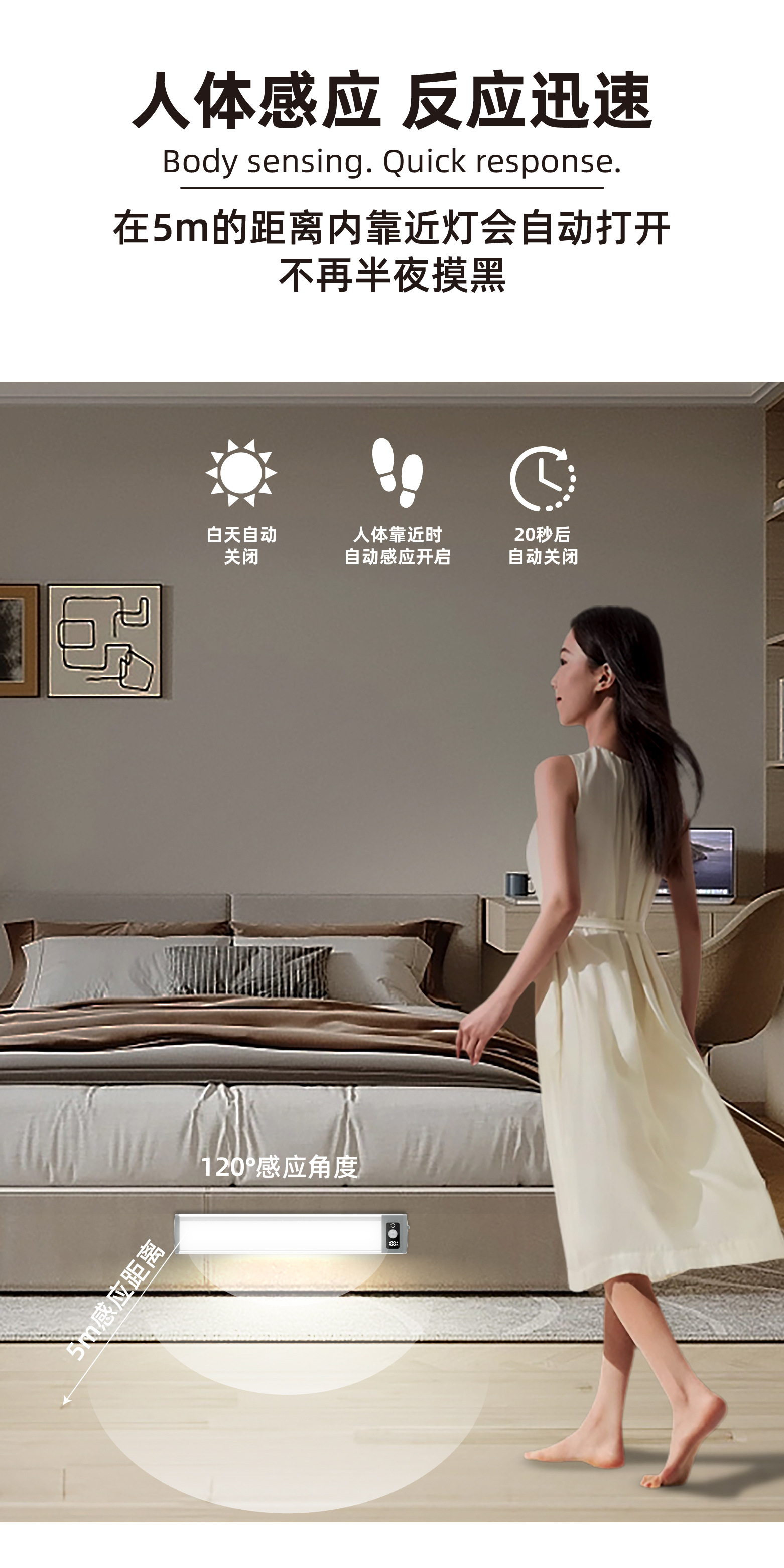 터치 자기 유도 3 색 침실 캐비닛 머리맡 램프 벽 램프 침실 머리맡 복도 옷장 캐비닛 야간 조명