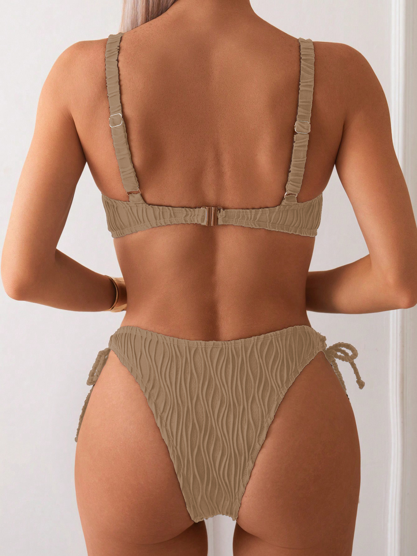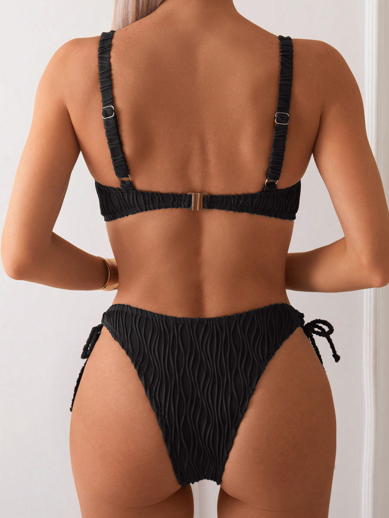 수영복 국경 간 대외 무역 2025 새로운 스타일 비키니 유럽과 미국의 섹시한 단색 스플릿 수영복 여성 비키니