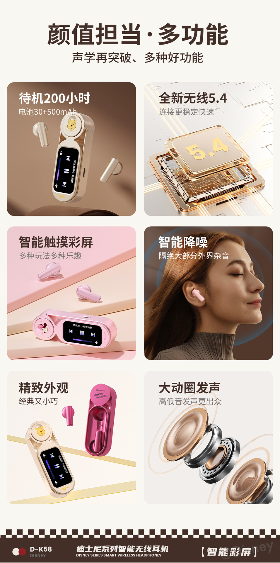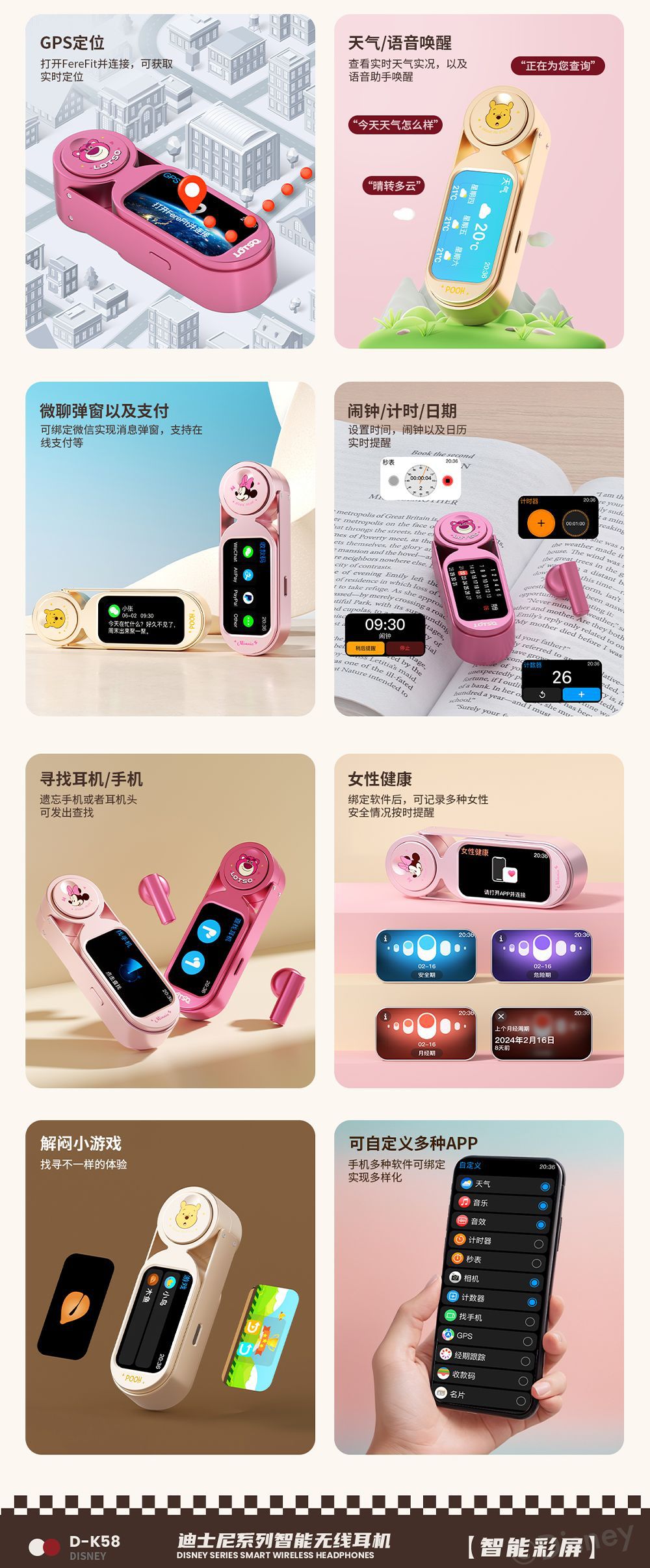다기능, 작고 절묘한 디즈니의 새로운 스마트 터치 스크린 블루투스 헤드셋스토어 가기