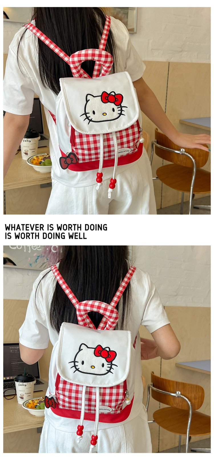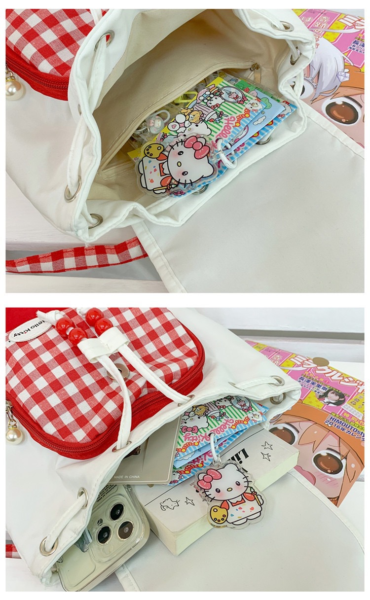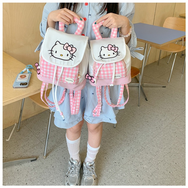 한국 스타일 Ins 귀여운 키티 고양이 그리기 배낭 만화 달콤한 휴대용 플립 헬로 키티 어린이 배낭 여성