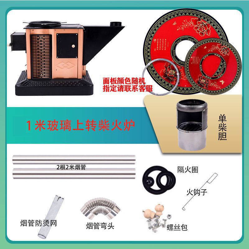 • 업그레이드된 장작 난로 + 스테인리스 물탱크 - 1m 강화유리 [일반 스타일]