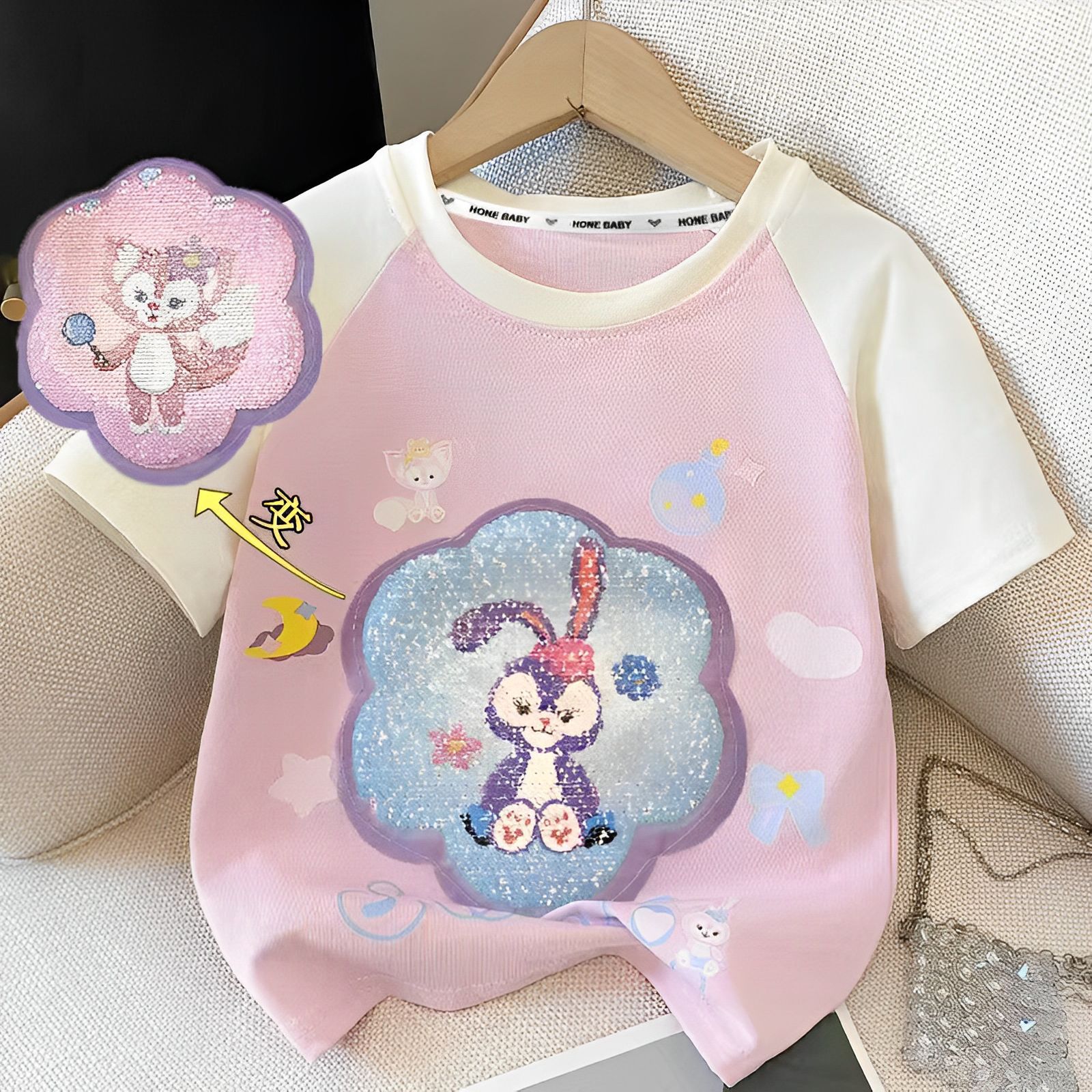 아동복 쿠로미 아동 티셔츠 여름 순면 여아 반팔 티셔츠 색상 변경 스팽글 패턴 라글란 탑스토어 가기