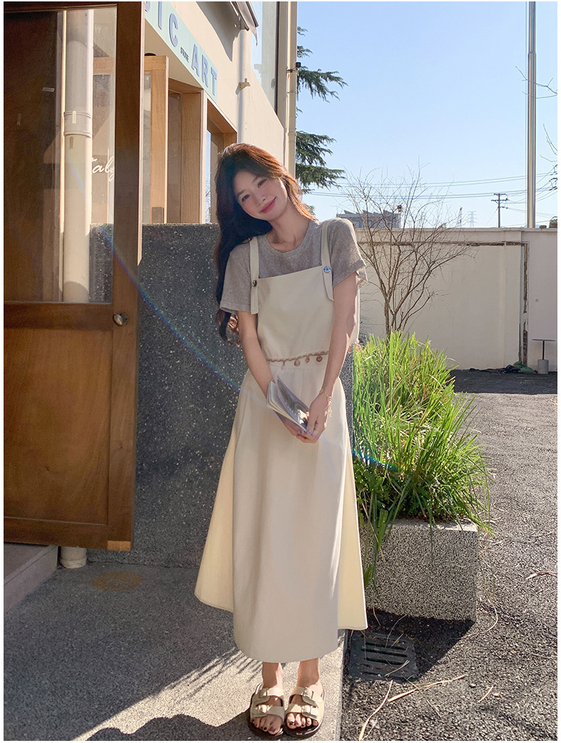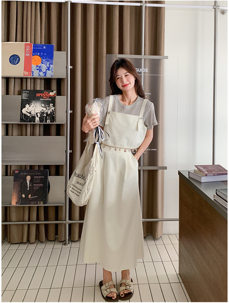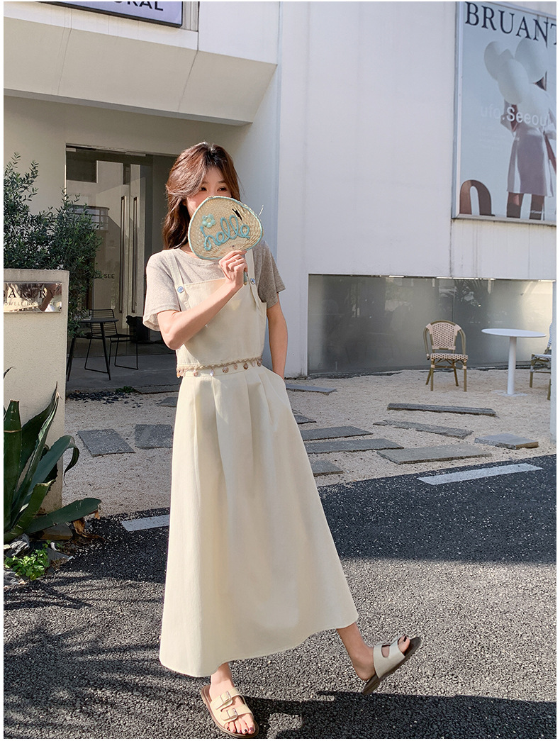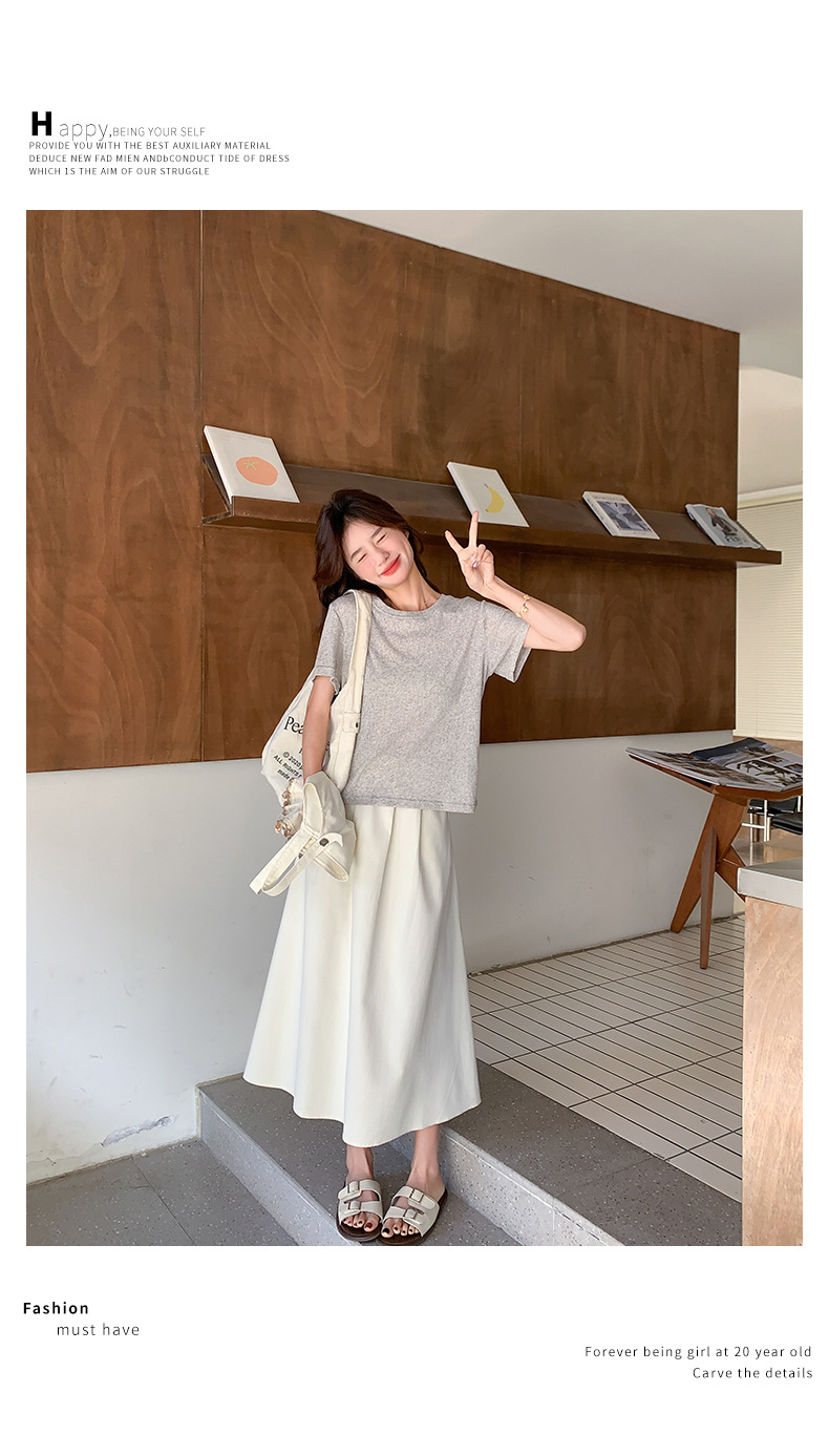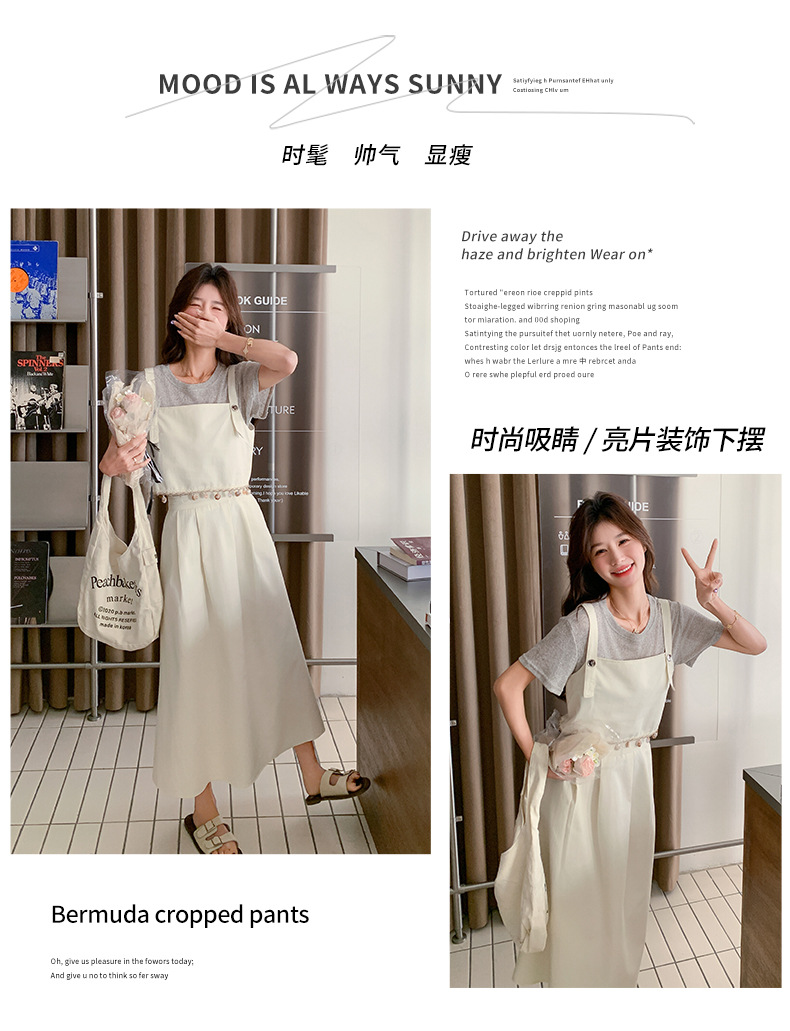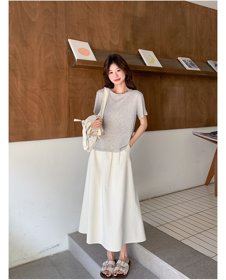 리얼 샷 2025 여름 새로운 한국식 기질 올 매치 슬림 스트랩 라운드 넥 티셔츠 스커트 3 피스 세트
