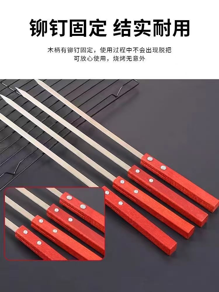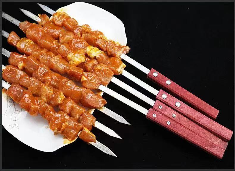 양고기 껍질이 있는 대형 양고기 꼬치, 양고기 갈비, 양고기 꼬치, 나무 손잡이, 양고기 꼬치, 나무 손잡이, 두꺼운 꼬치, 스테인레스 스틸스토어 가기