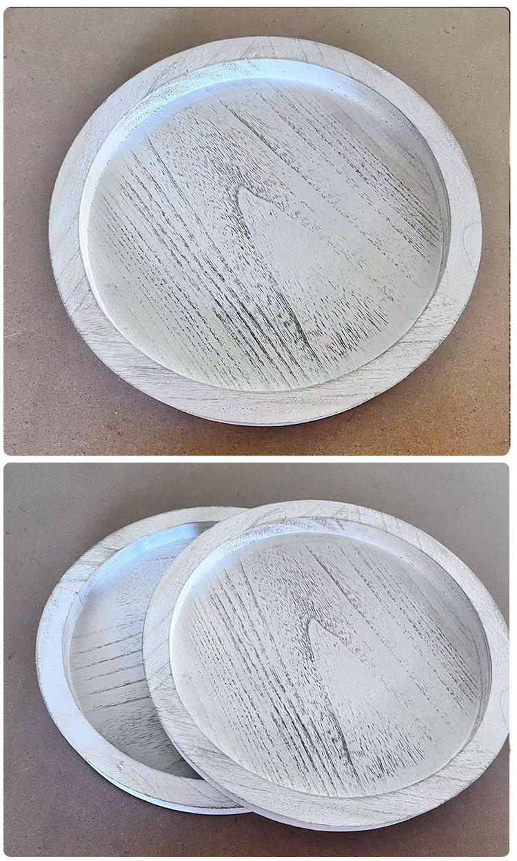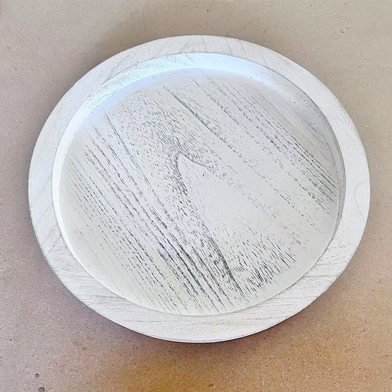 국경 간 단단한 나무 트레이 복고풍 색상 저장 트레이 둥근 나무 촛불 홀더 홈 식탁 과일 빵 트레이스토어 가기