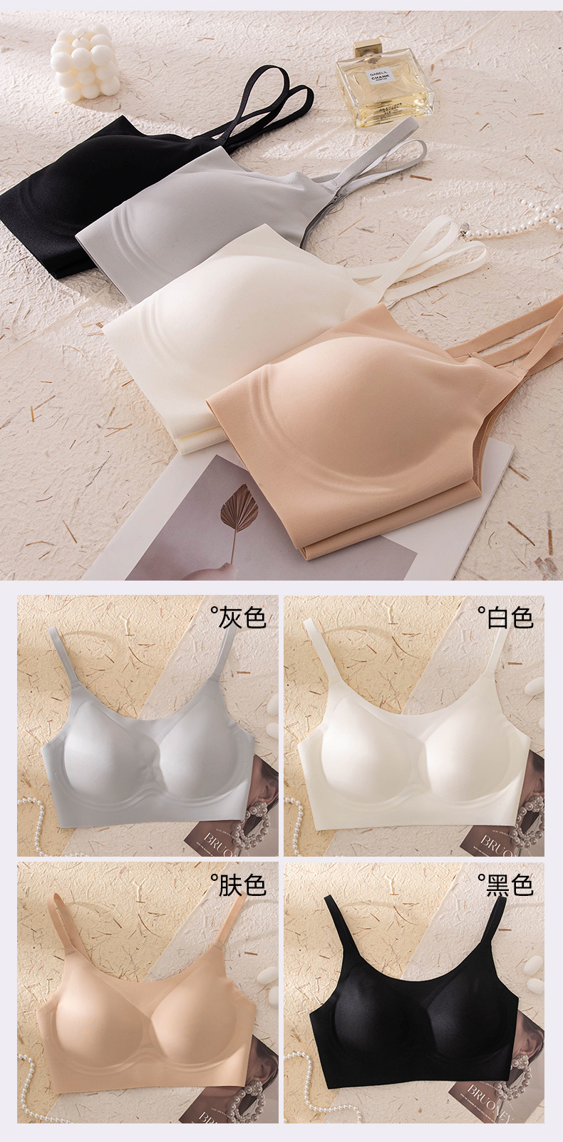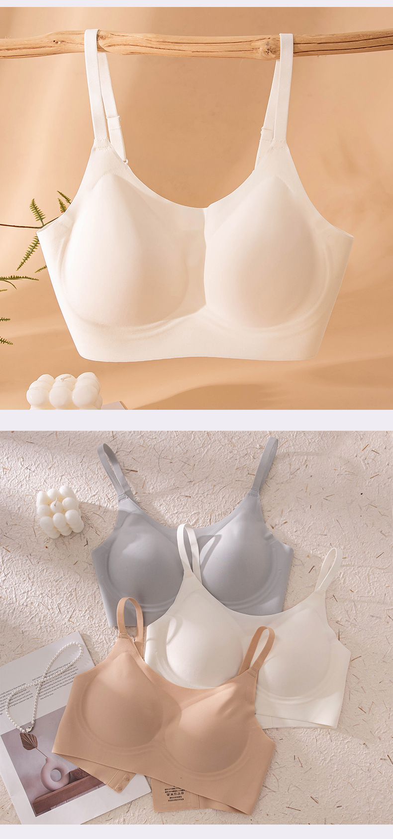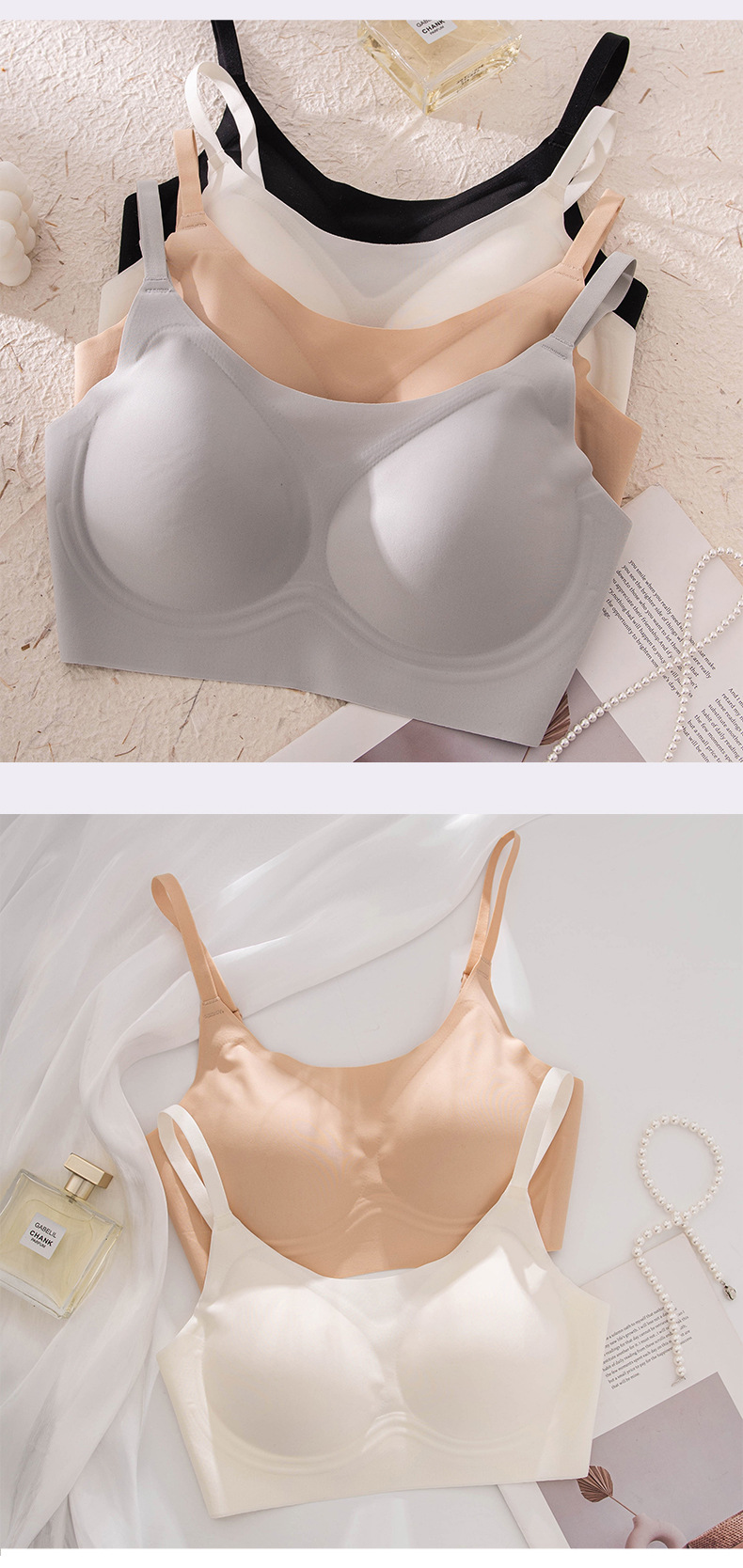 작은 가슴을 가진 여성을 위한 100% 실크 무봉제 속옷, 처짐 방지, 가슴 수축 브라, 여름용 얇은 흰색 T, 비침투성 및 보이지 않음스토어 가기