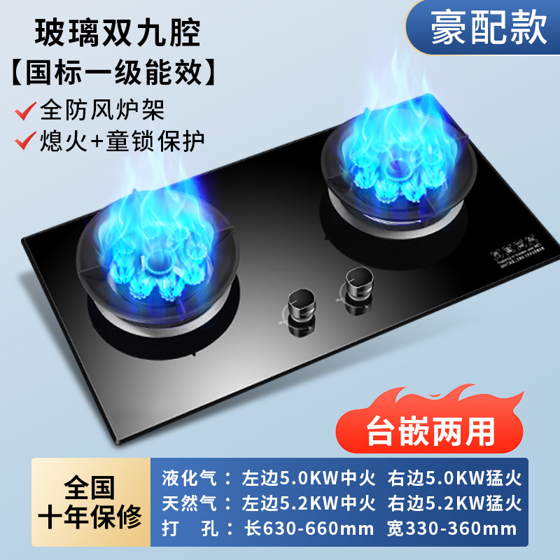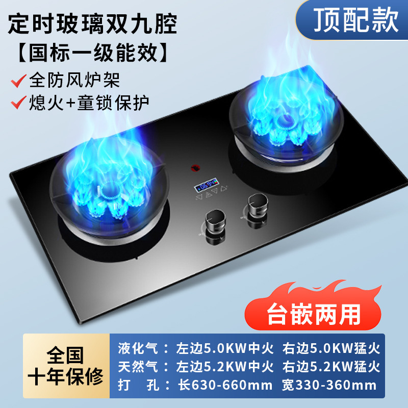 • [플래그십 모델] 강화유리 + 양면 9구 화재 + 사각 방풍 스토브 랙 + 타이밍 기능