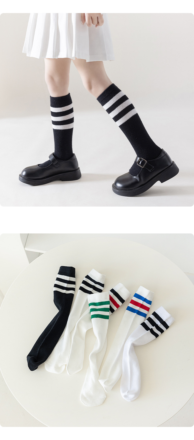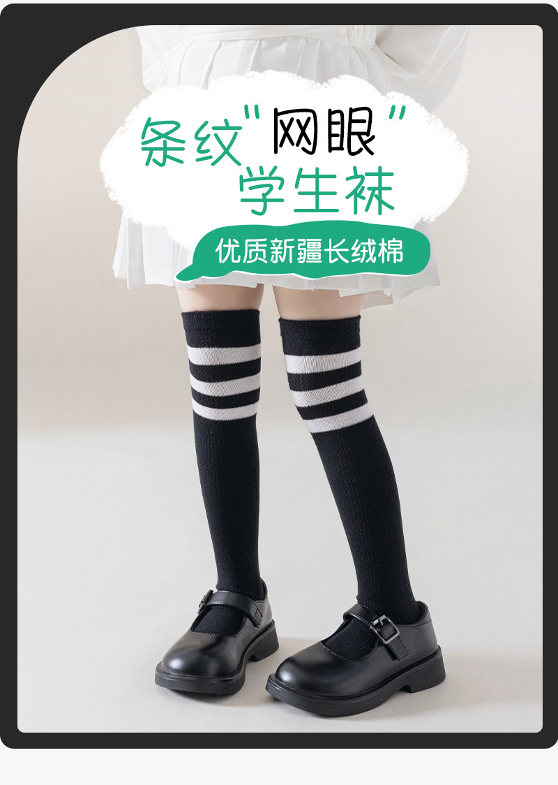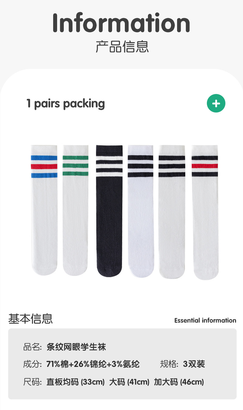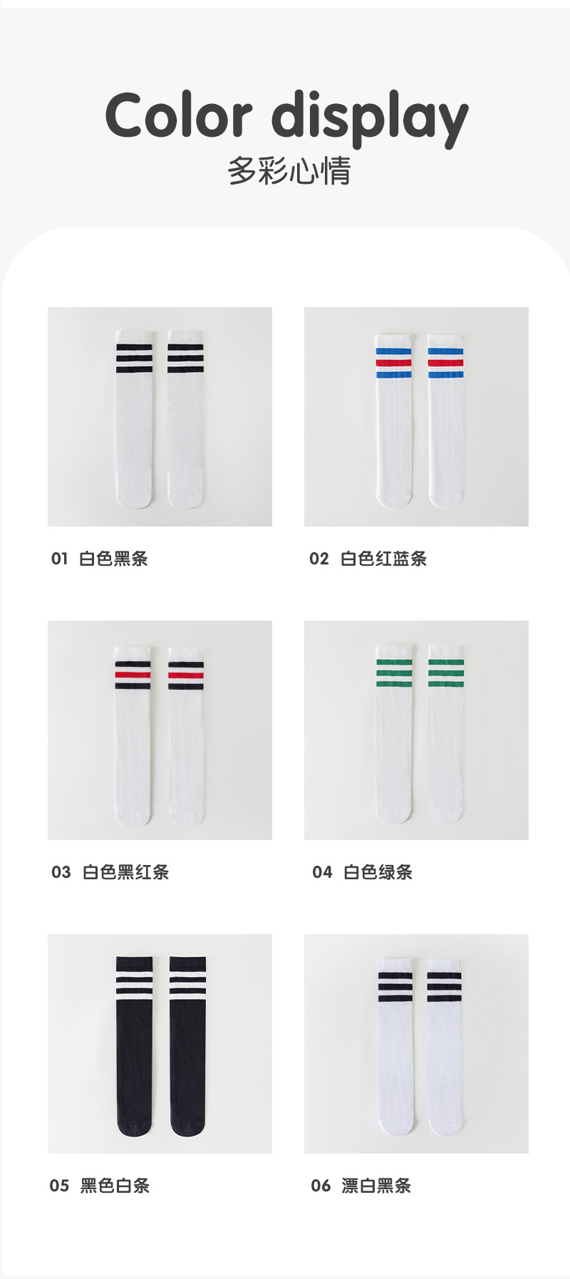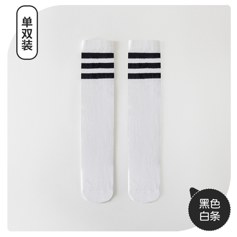 메쉬 학생면 양말 2025 여름 새로운 평행 바 줄무늬 소년 소녀 종아리 무릎 양말 어린이 양말 도매스토어 가기