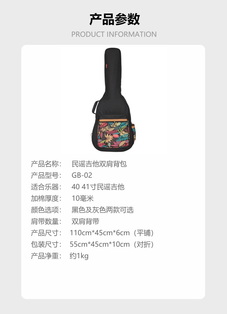 개인화 된 41 인치 포크 기타 가방 40 인치 어쿠스틱 기타 두꺼운 배낭 기타 배낭 코튼 피아노 가방 액세서리