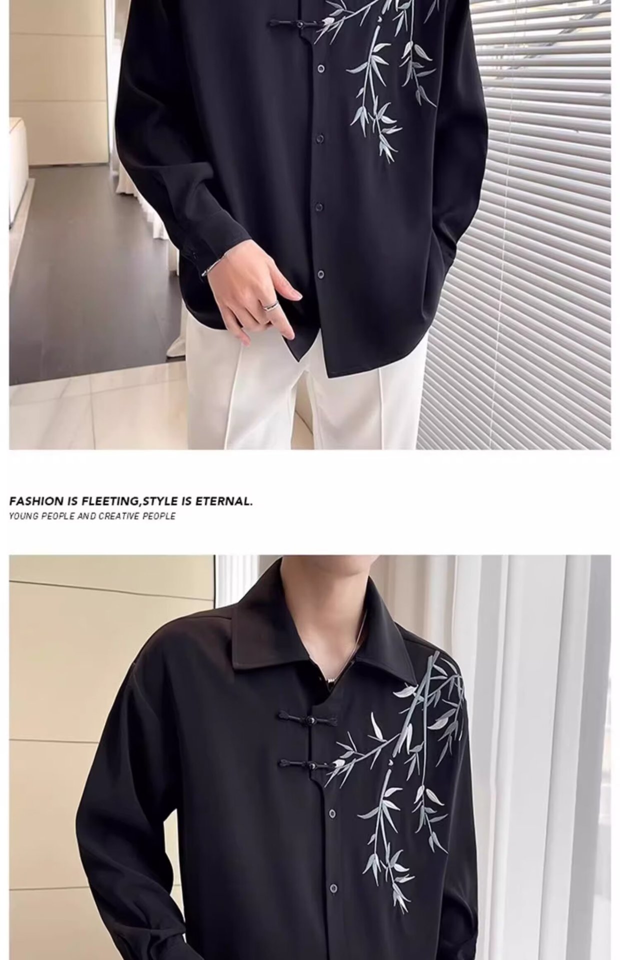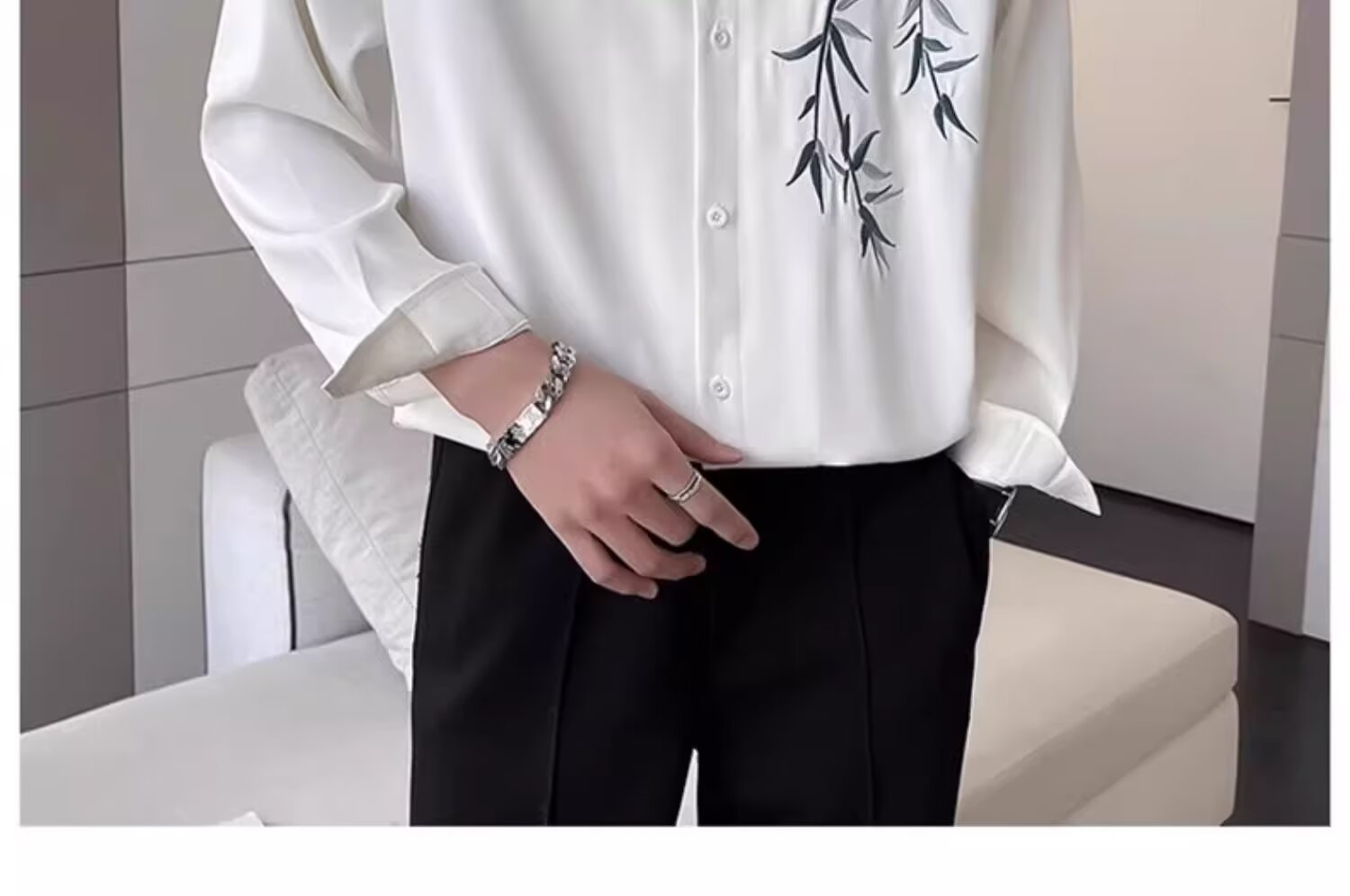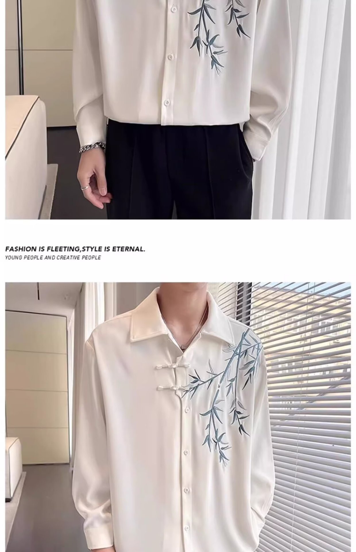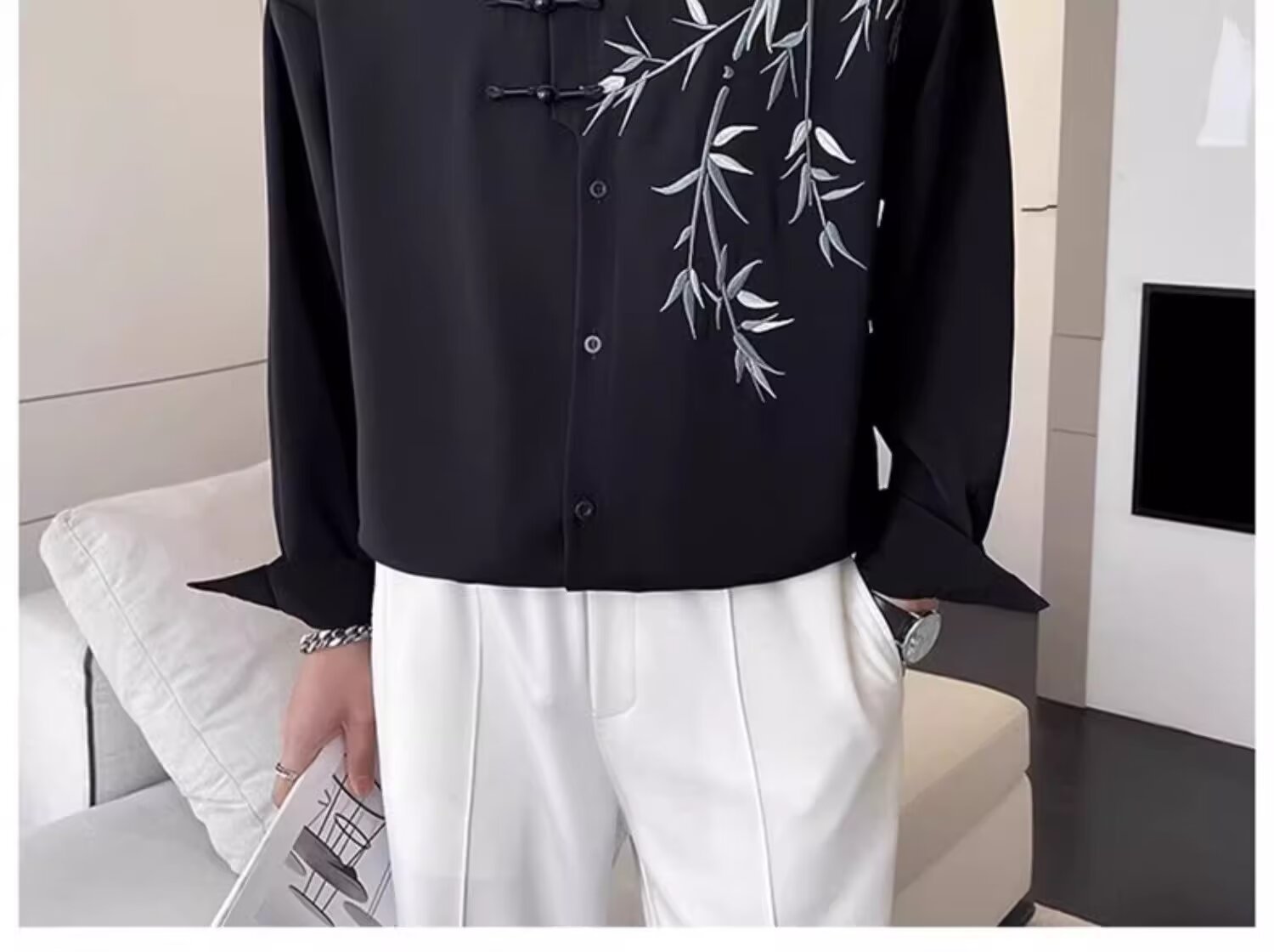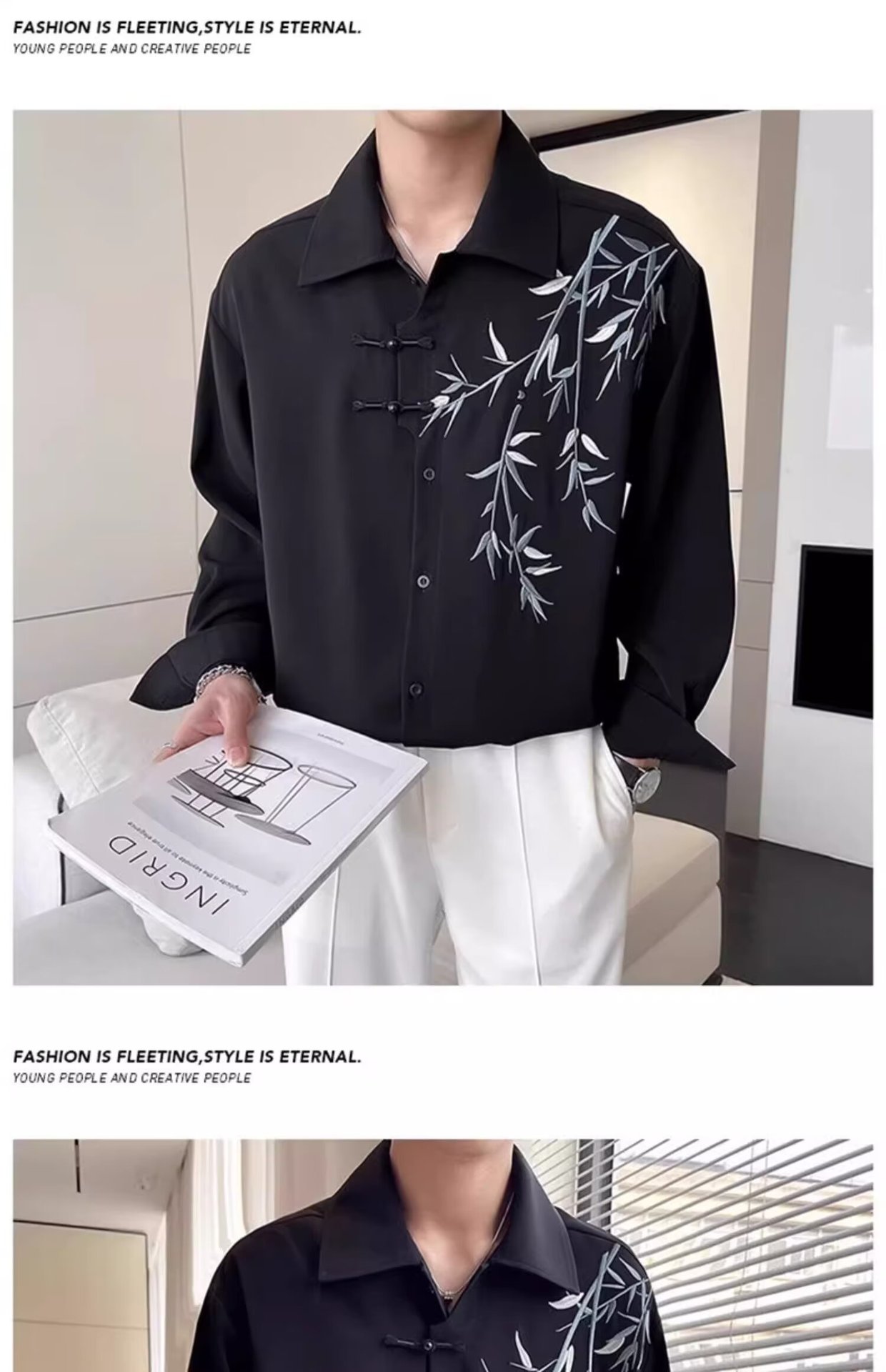봄, 가을 남성용 가볍고 성숙한 스타일의 남성 셔츠, 새로운 중국 스타일의 전국 트렌드 자수 디자인 셔츠, 고급스럽고 멋진 양복스토어 가기