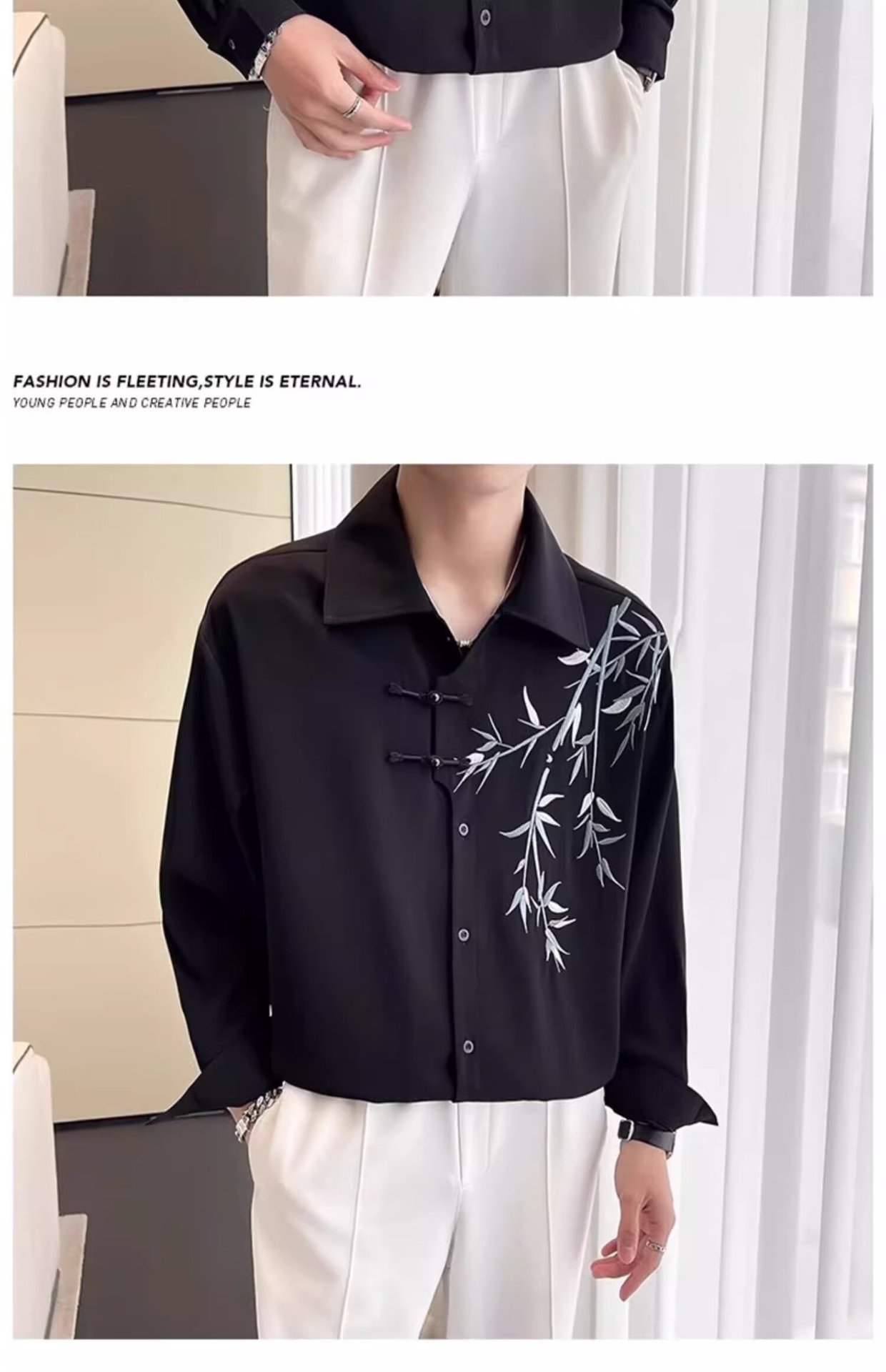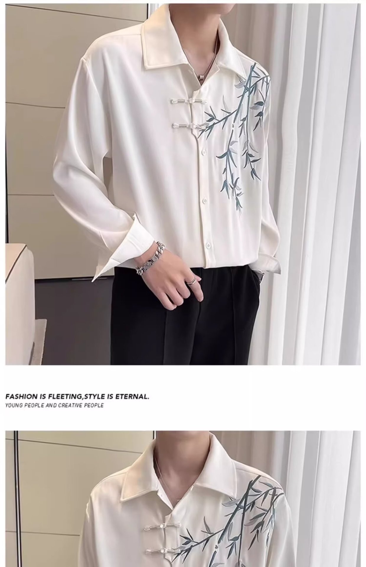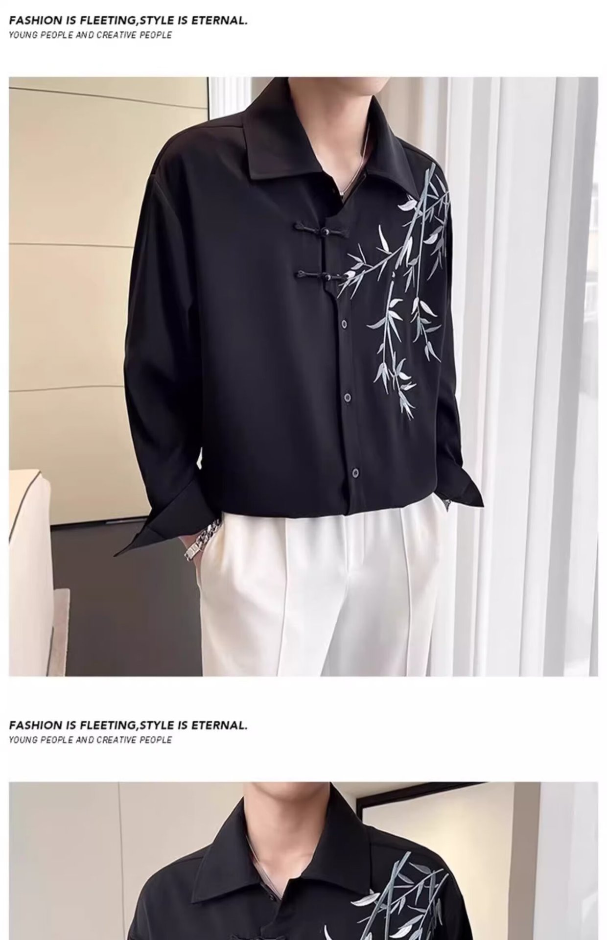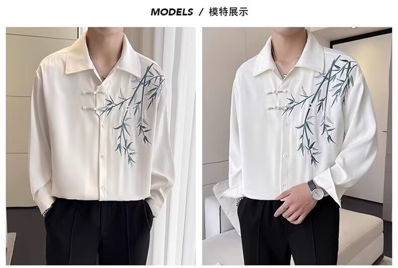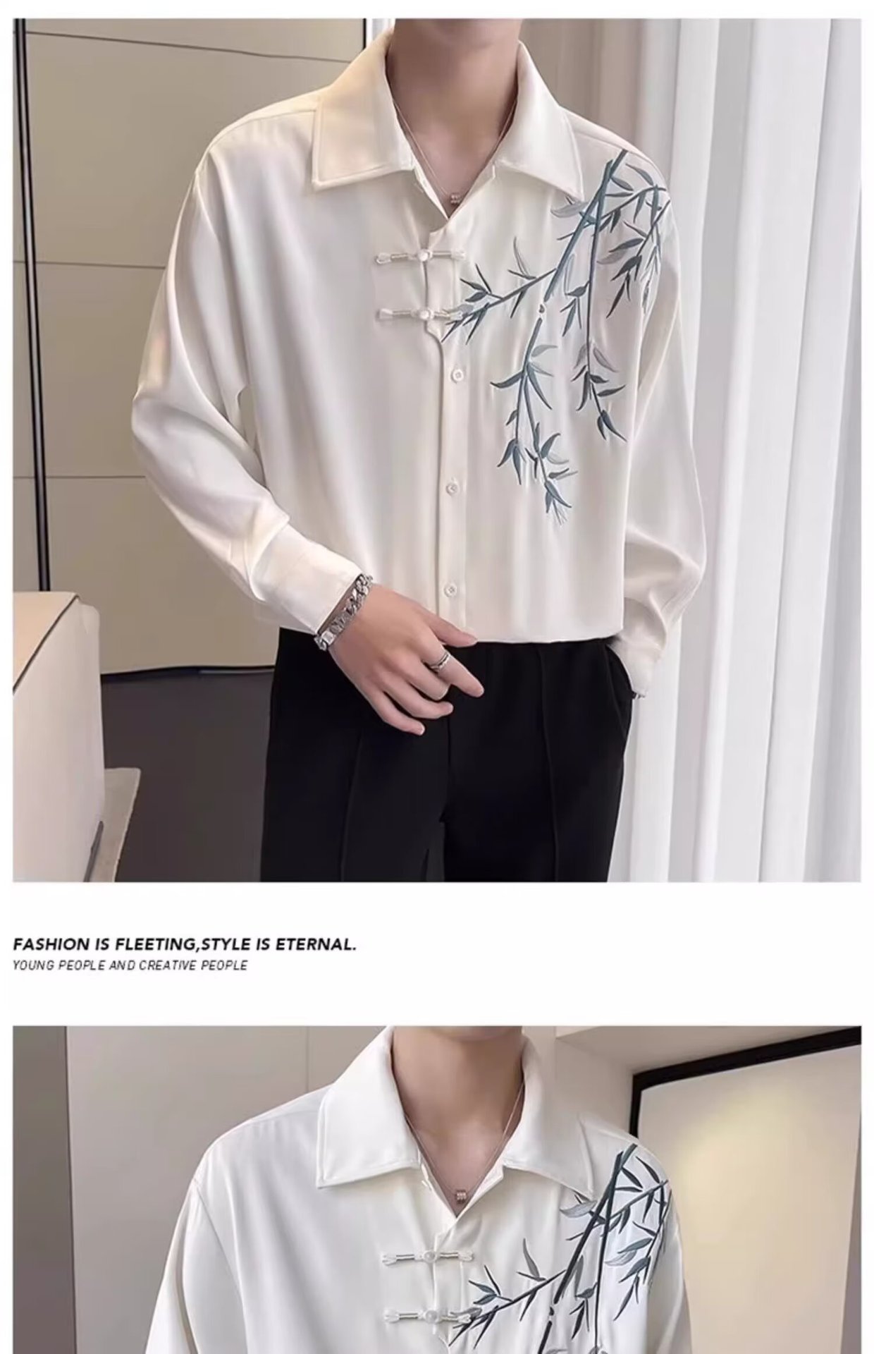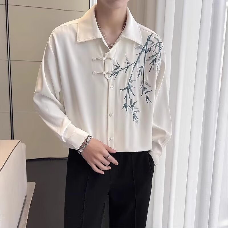 봄, 가을 남성용 가볍고 성숙한 스타일의 남성 셔츠, 새로운 중국 스타일의 전국 트렌드 자수 디자인 셔츠, 고급스럽고 멋진 양복스토어 가기