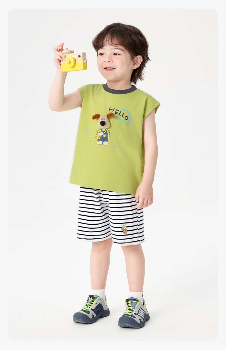 오른쪽 유럽 소년 스포츠 세트 여름 조끼 반바지 2025 새로운 아동복 어린이 아기의 여름 얇은