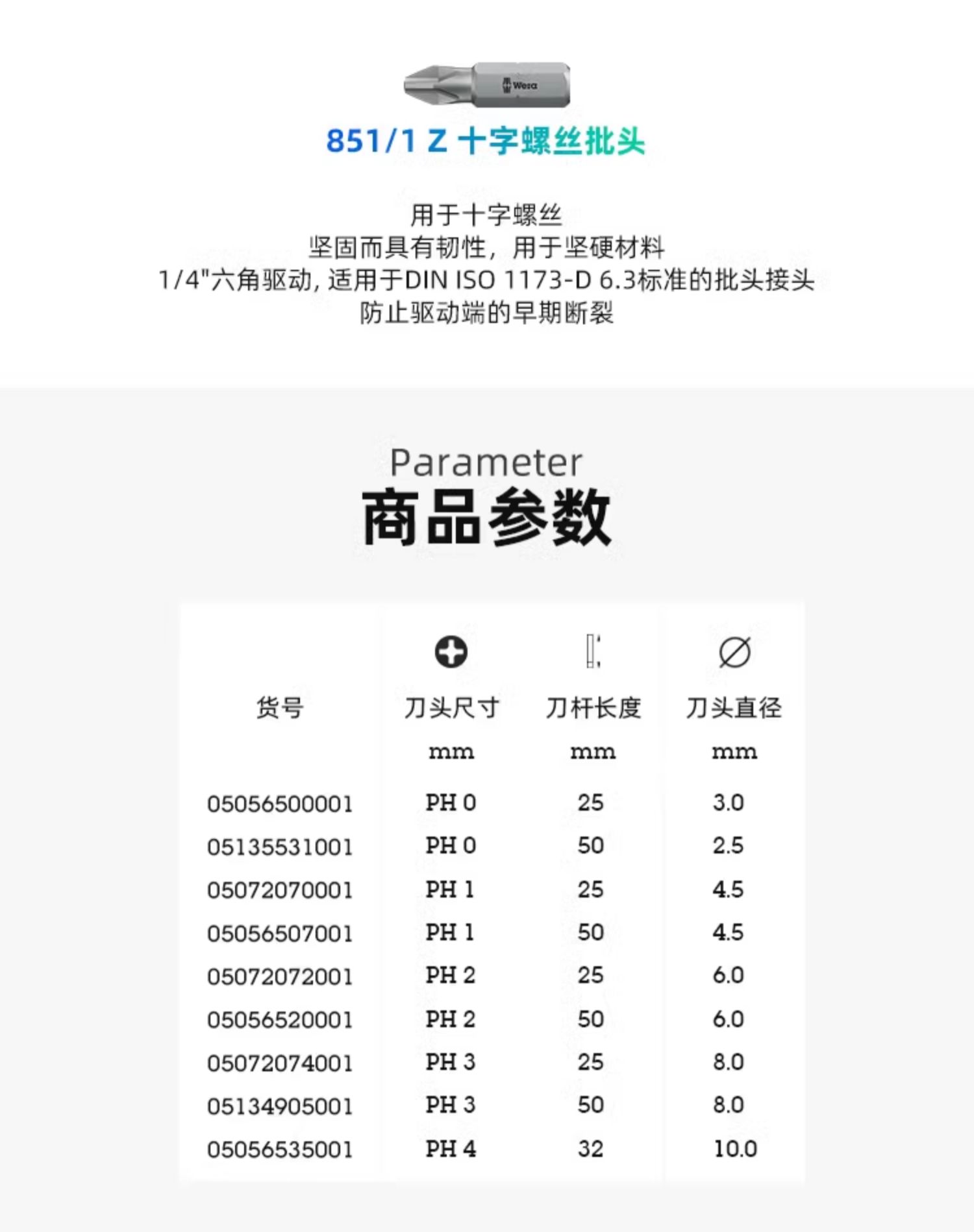 독일 Wera 수입 851/4 Z형 십자 드라이버 길이 연장 전동 드라이버 헤드스토어 가기