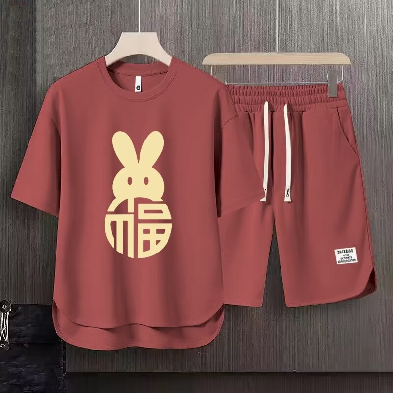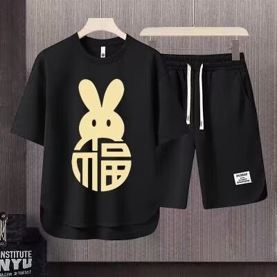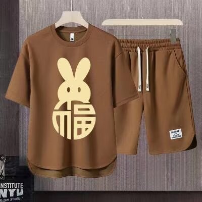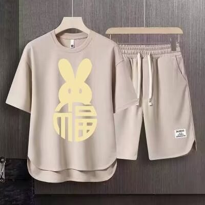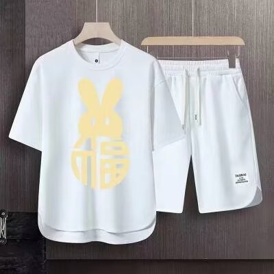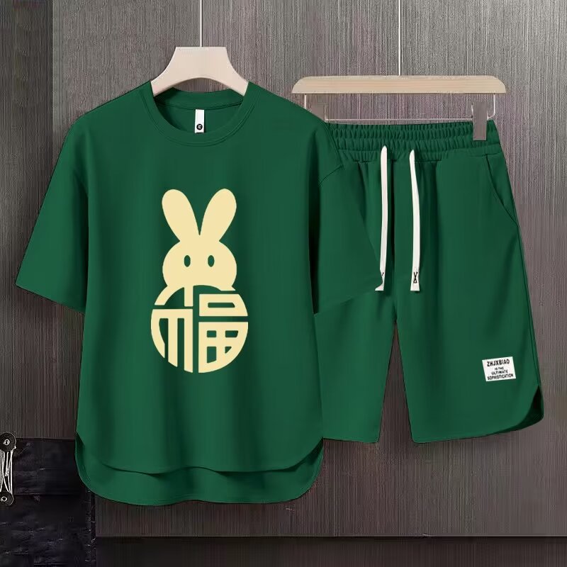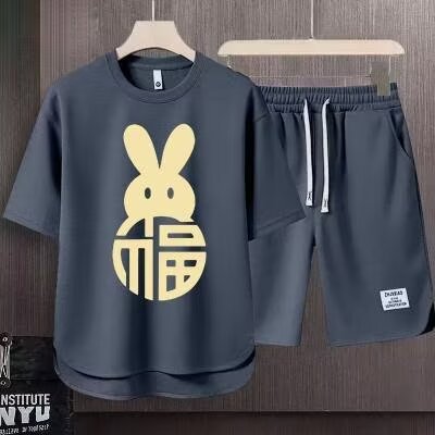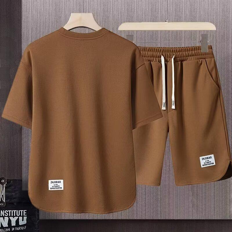 반팔 반바지 정장 남성 여름 캐주얼 아이스 실크 티셔츠 남성 고급 스포츠 투피스 트렌디 세트스토어 가기