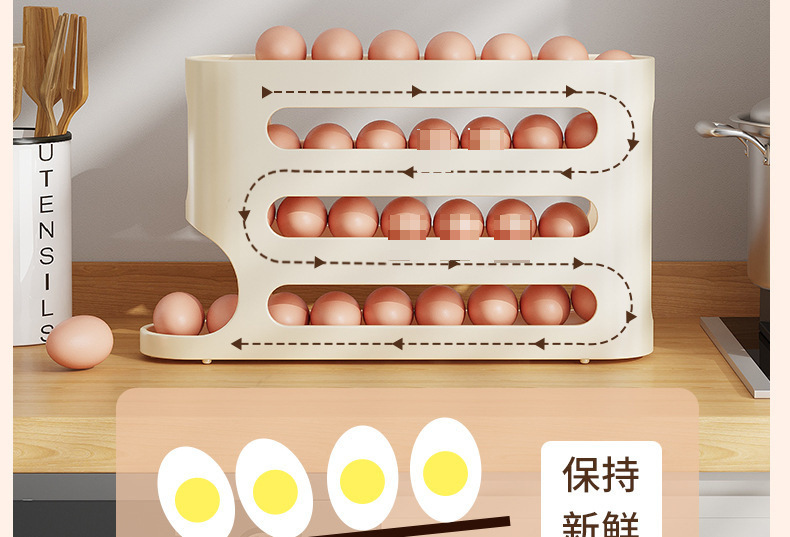냉장고 사이드 도어 대용량 자동 계란 롤러 슬라이드 계란 저장 상자 4 사다리 계란 상자 저장 간단한스토어 가기