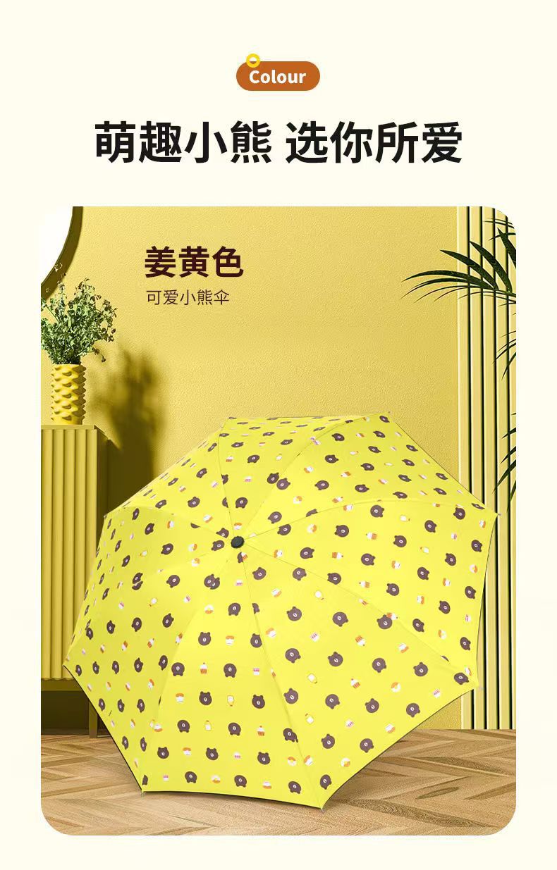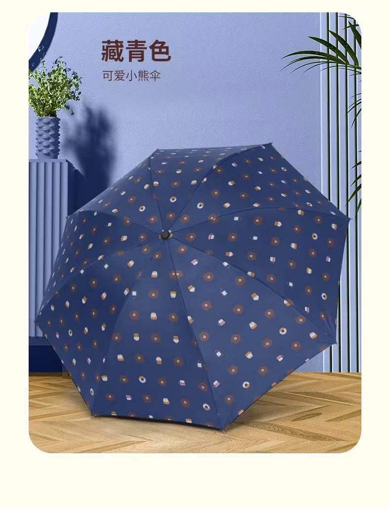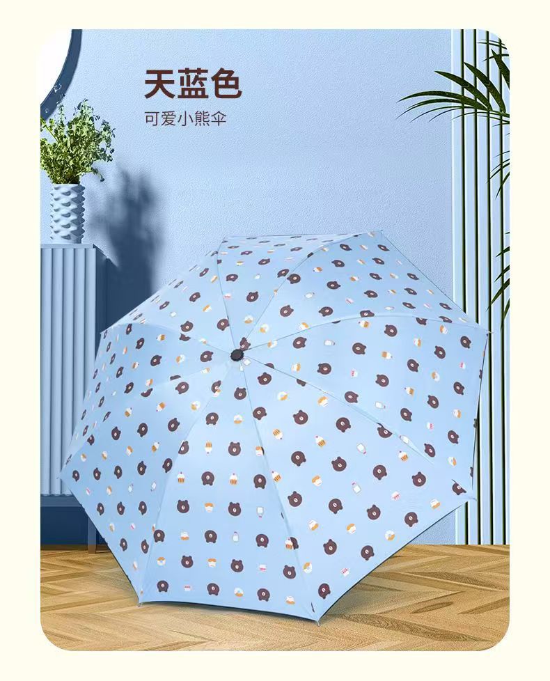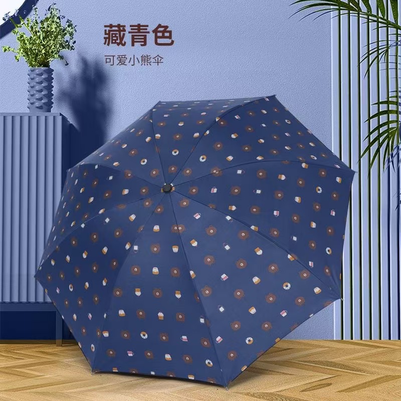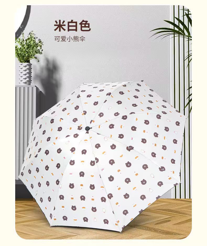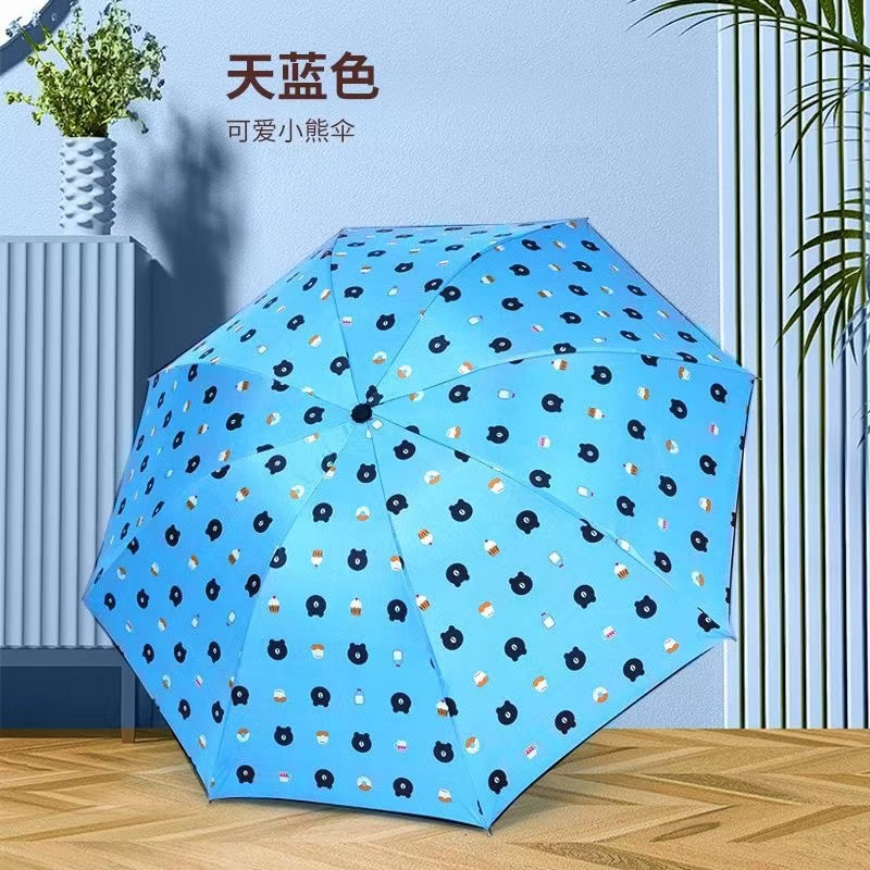 수동 우산, 비와 햇빛 모두에 사용 가능한 접이식 양산, 창의적인 자외선 차단 광고 우산, 블랙 글로스 우산, 만화 귀여운 동물 디자인