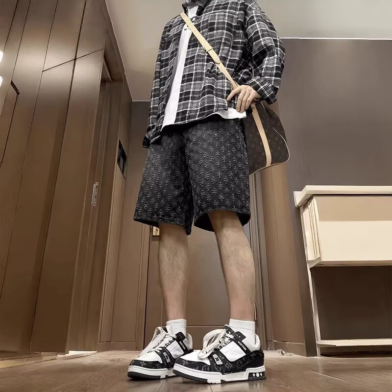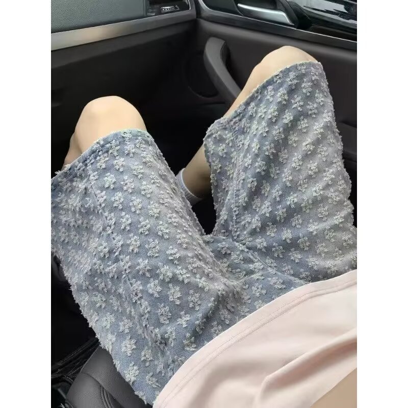 미국 빈티지 자카드 청바지 반바지 남자 여름 디자인 워시 바지 캐주얼 올 매치 스포츠 바지스토어 가기