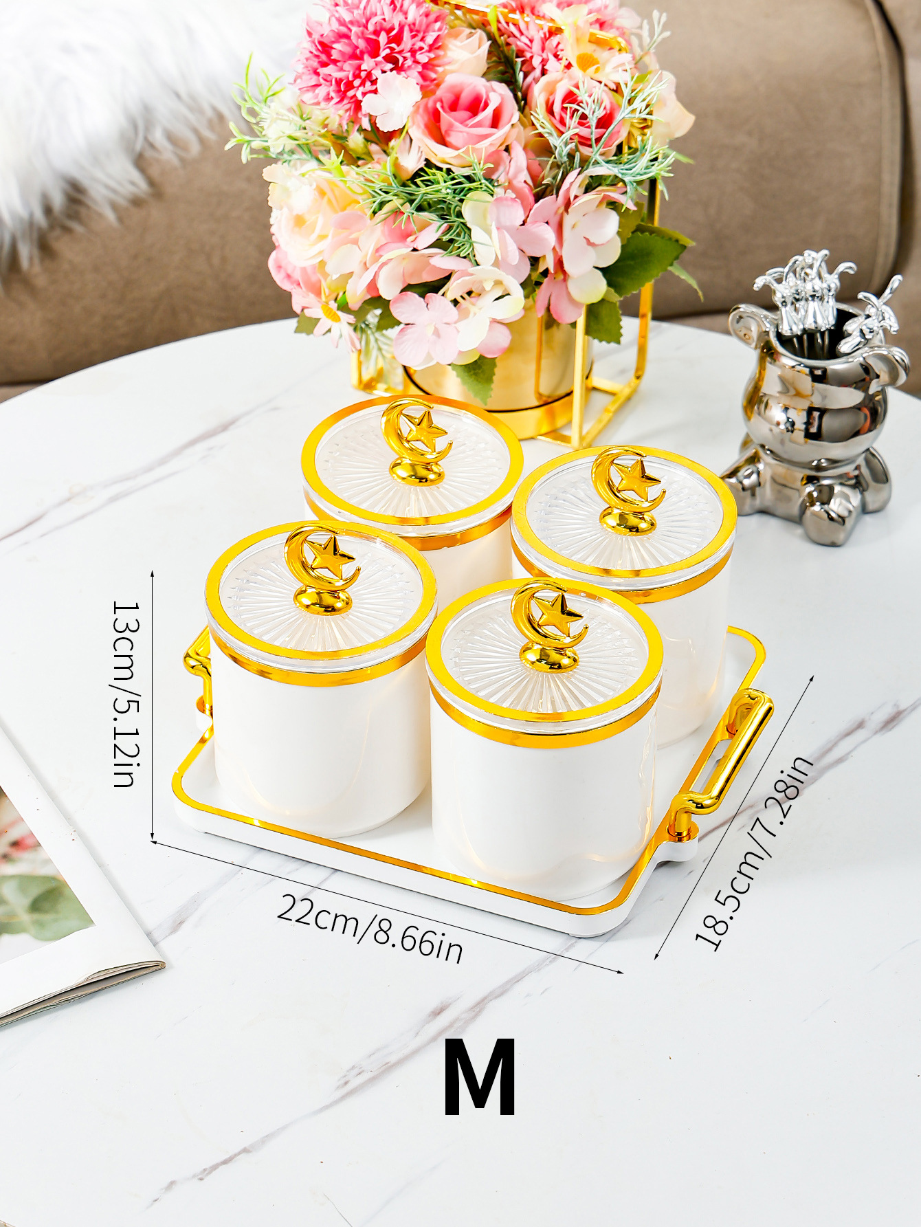 • 호박색 원형 캔 + 4칸 트레이 - 달 별 손잡이