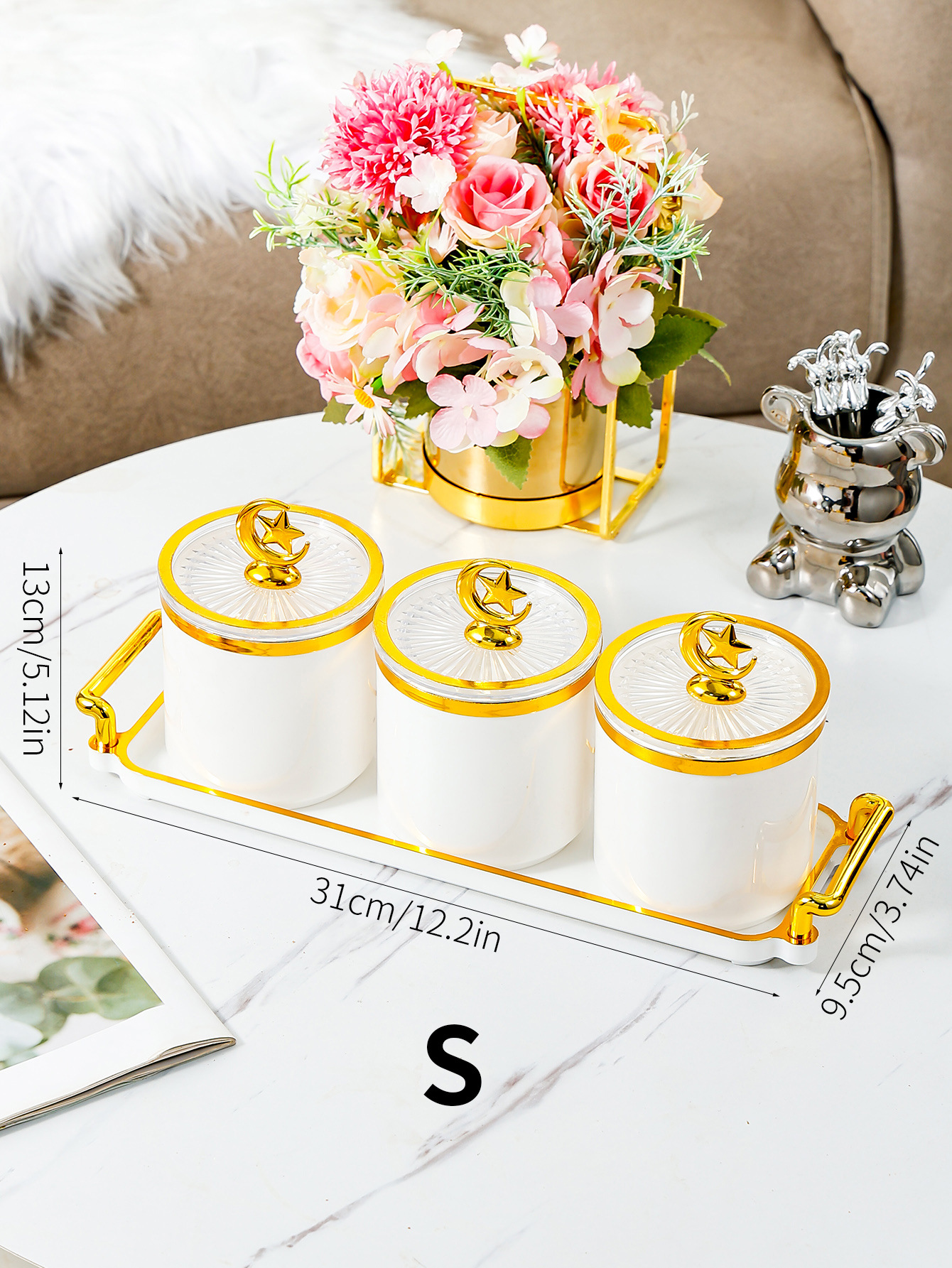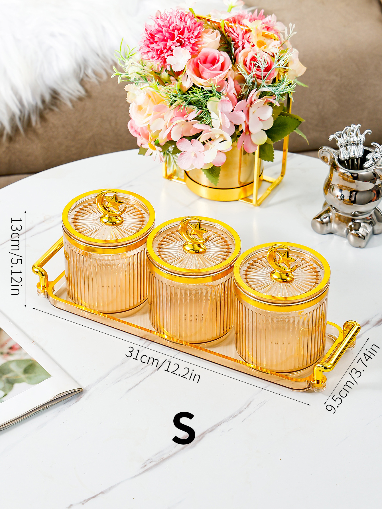 • 호박색 원형 캔 + 3칸 트레이 - 달 별 손잡이