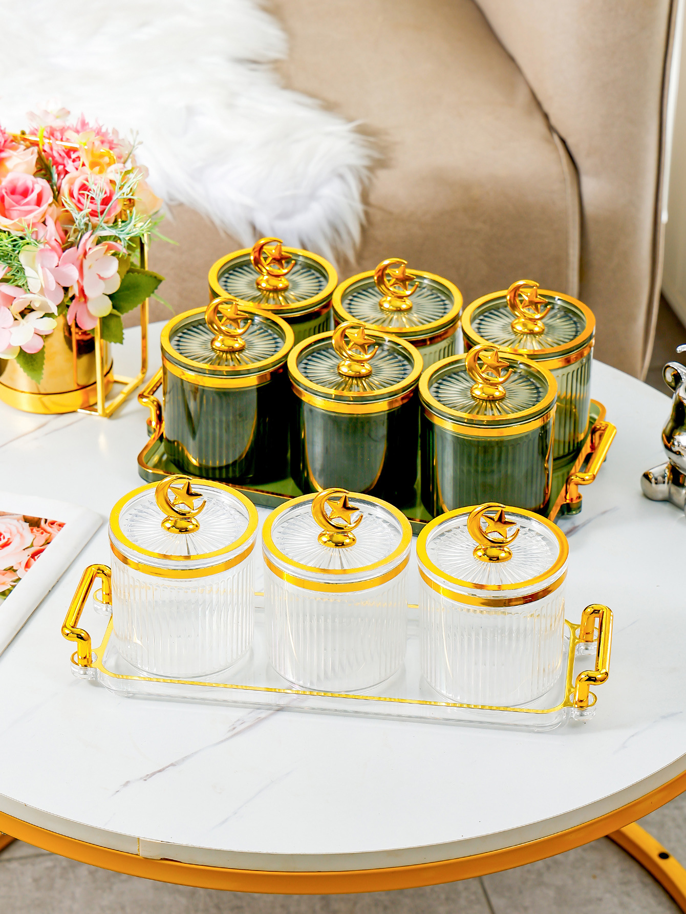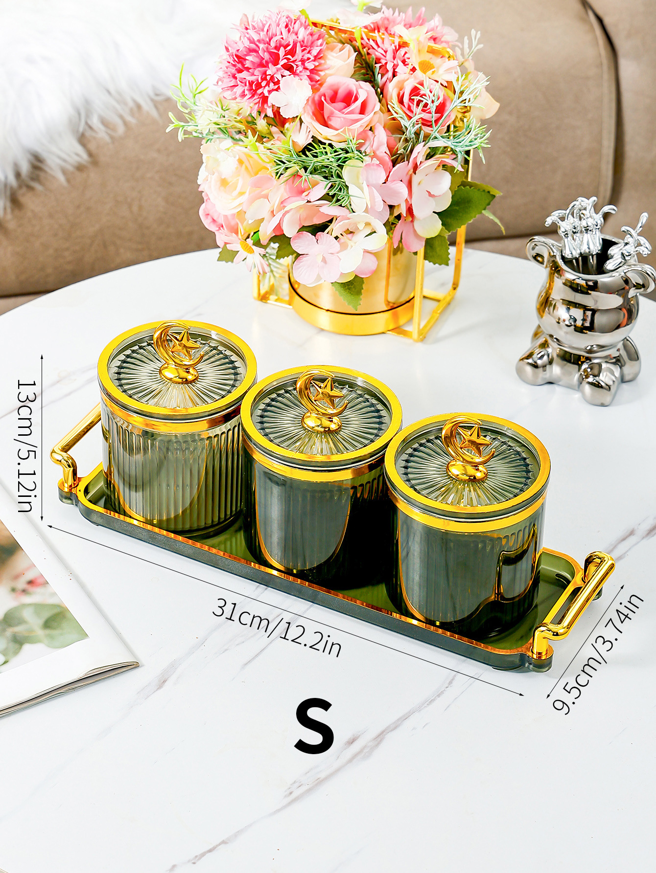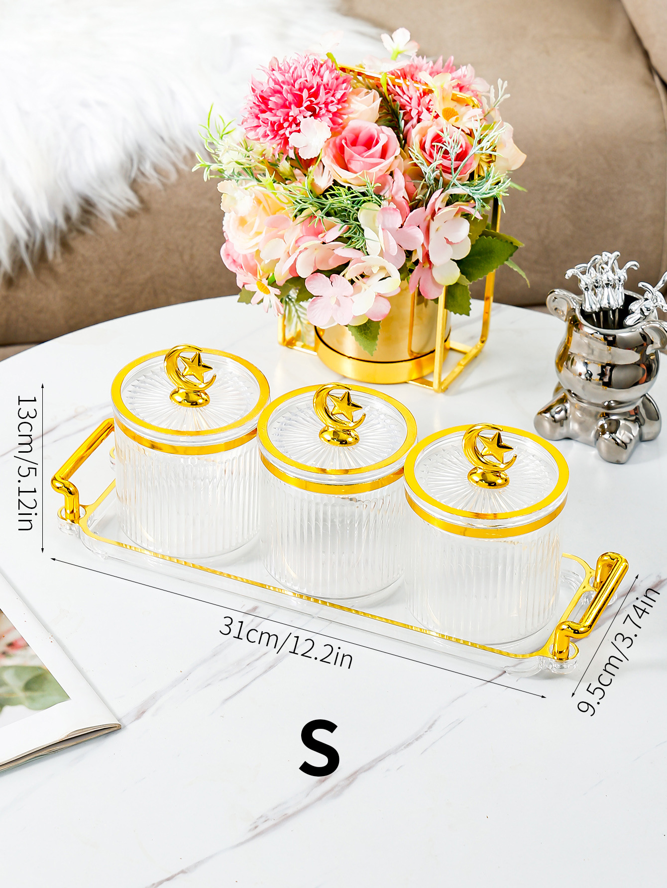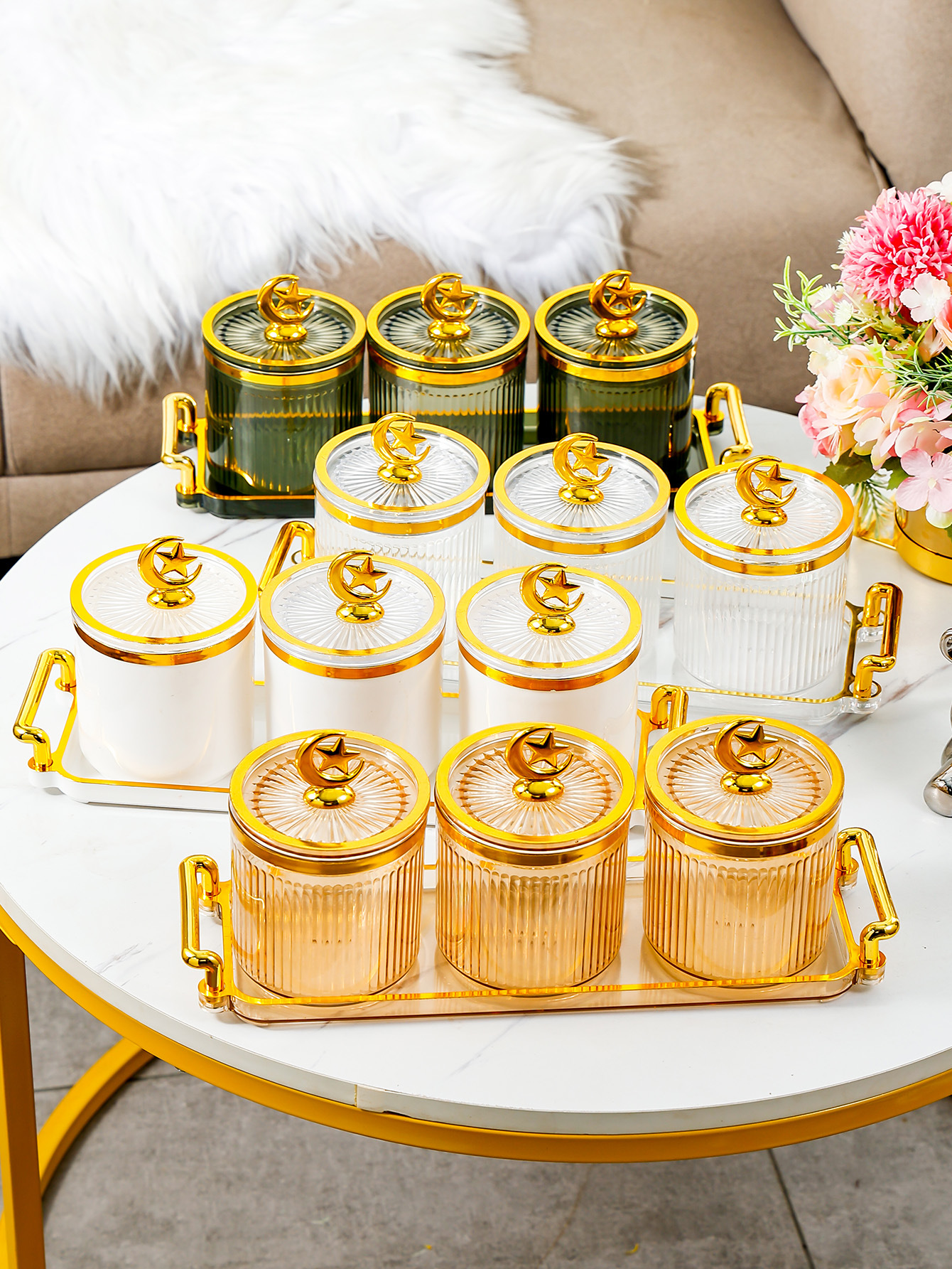 • 투명 원형 캔 + 3칸 트레이 - 문 스타 핸들