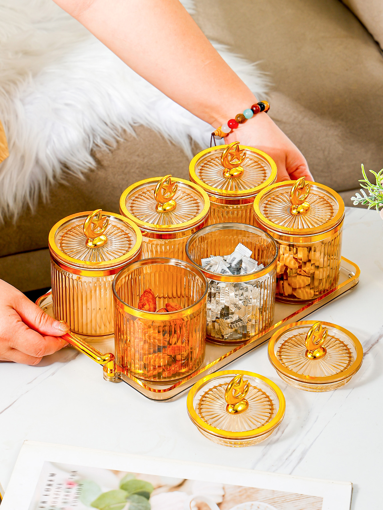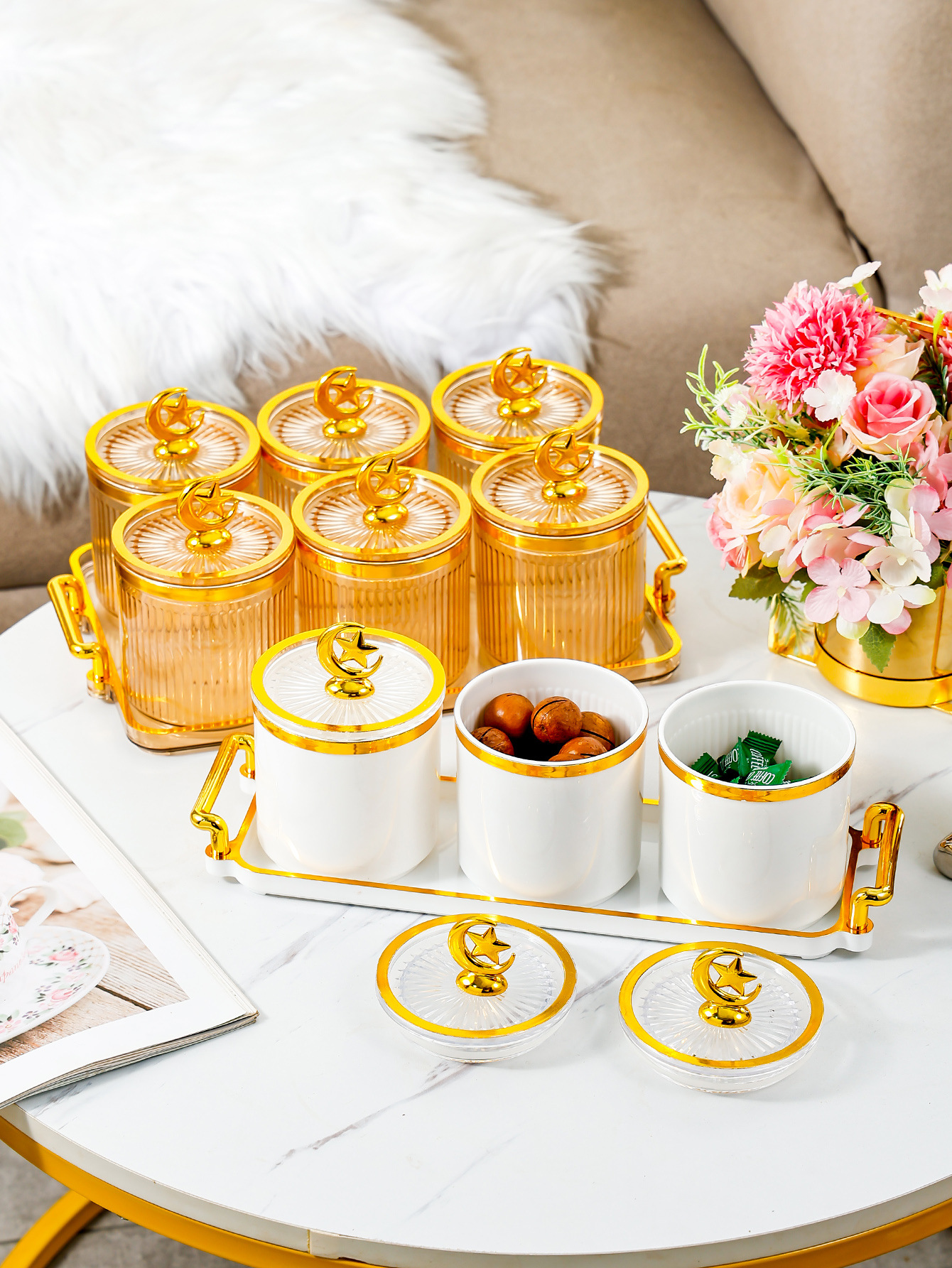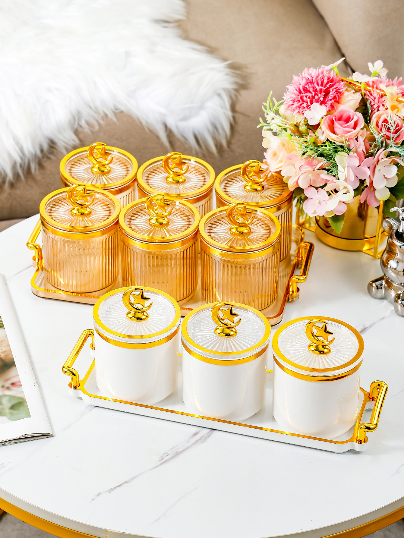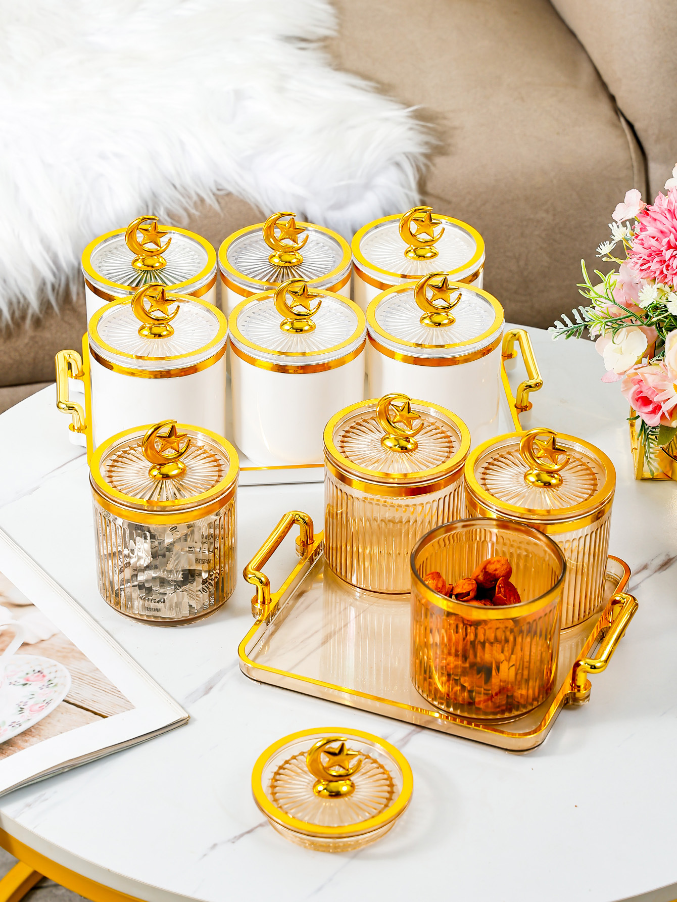 • 호박색 원형 캔 + 6칸 트레이 - 달 별 손잡이