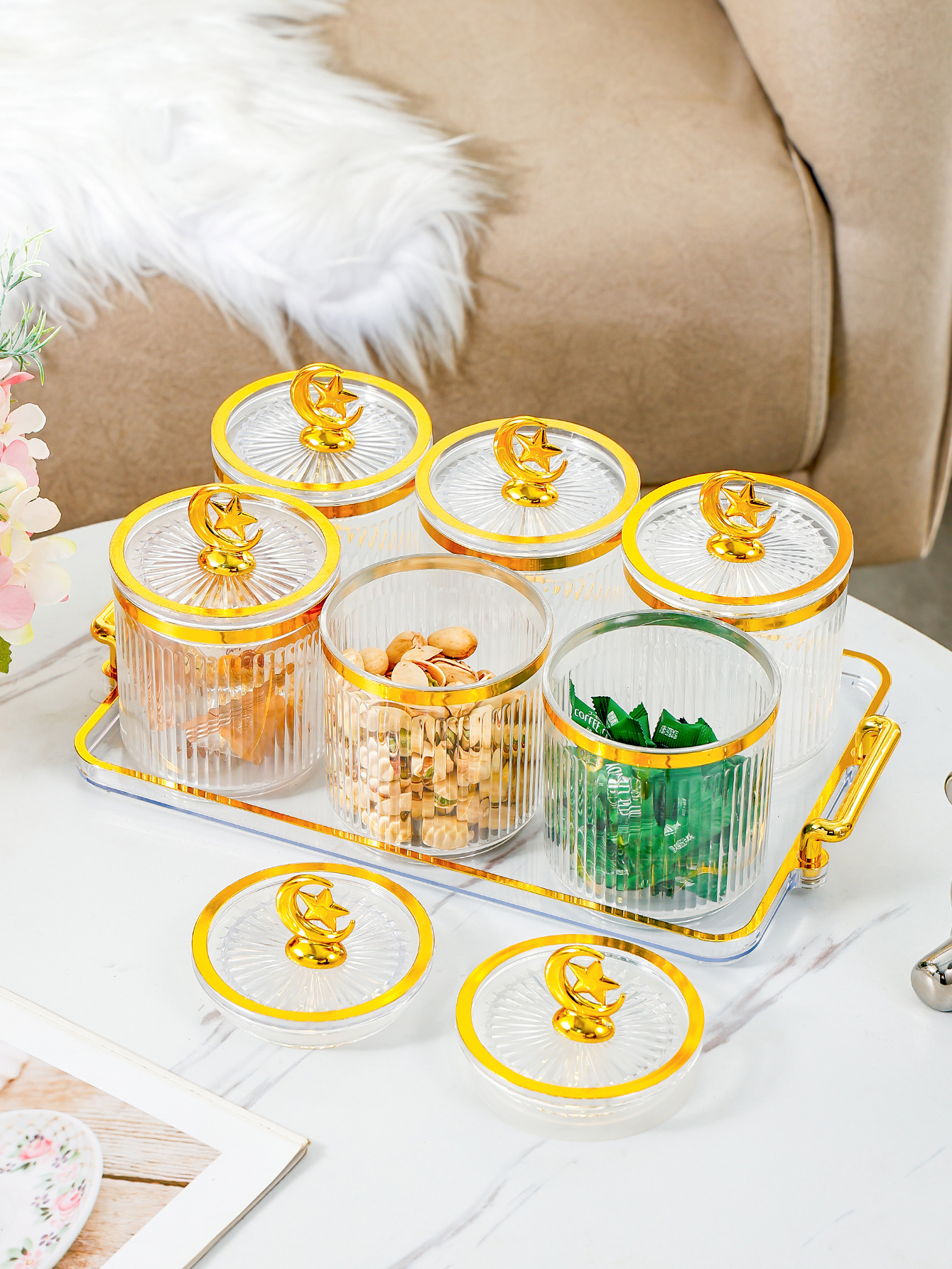 • 투명 원형 캔 + 6칸 트레이 - 문 스타 핸들