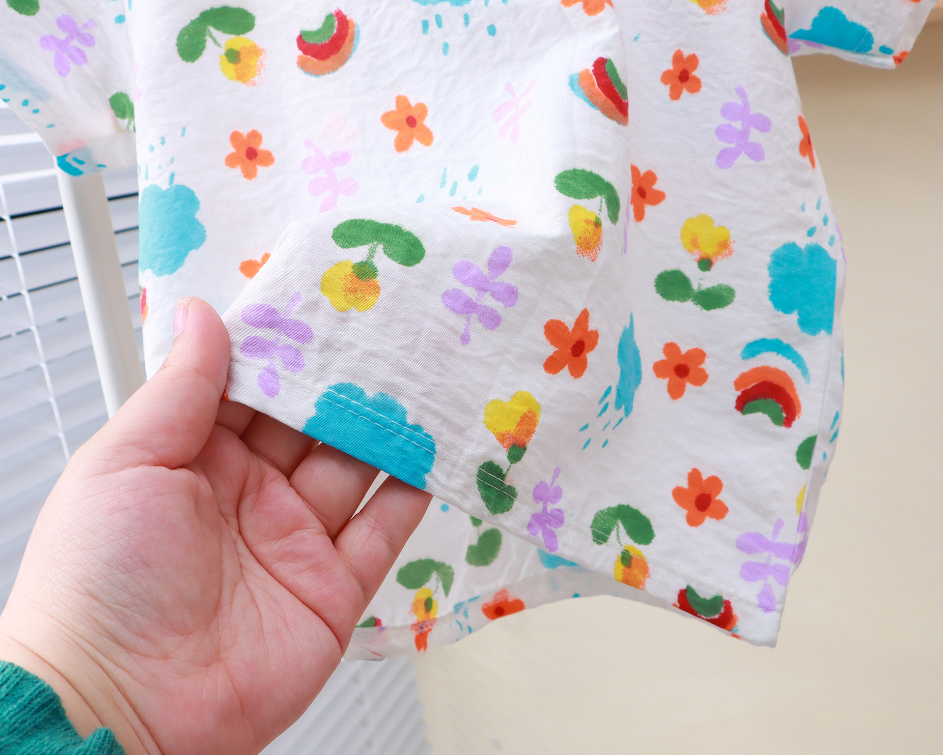 어린이 새 남학생과 여학생 홈 옷 파자마 반팔 세트 얇은 잠옷 에어컨 여름 남녀 반쪽 바지스토어 가기