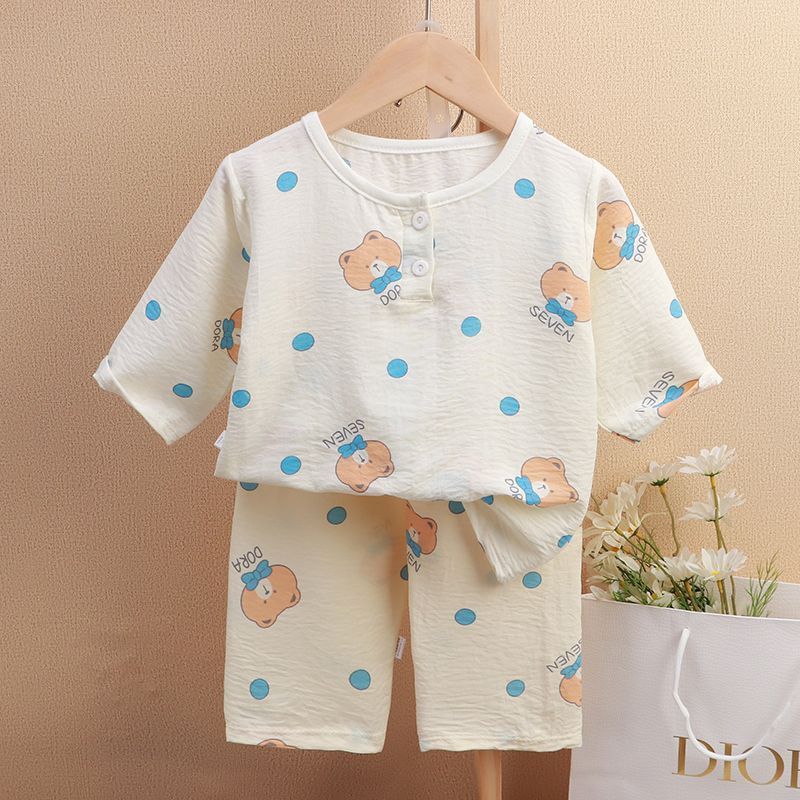 어린이 새 남학생과 여학생 홈 옷 파자마 반팔 세트 얇은 잠옷 에어컨 여름 남녀 반쪽 바지