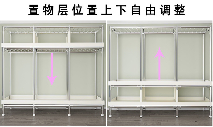 두꺼운 강철 파이프와 강화된 간단한 가정용 침실 전체 강철 프레임 패브릭 밀봉 방진 임대 옷장스토어 가기