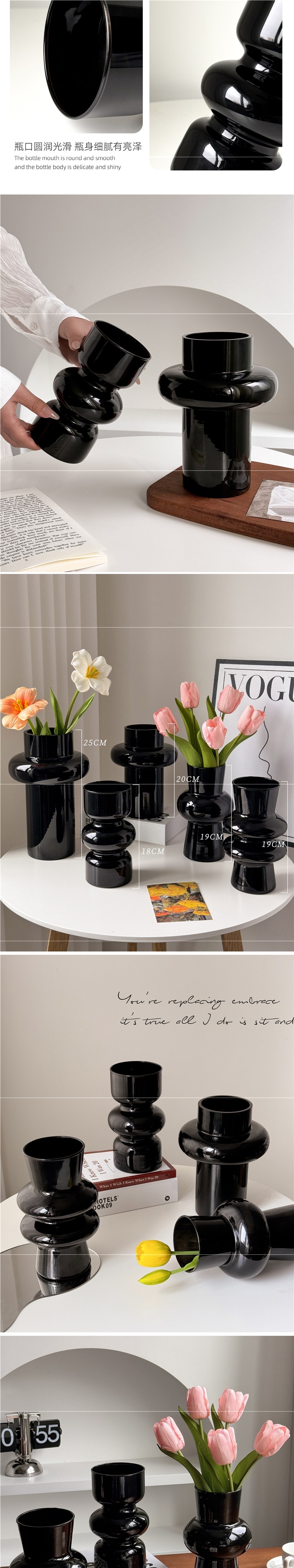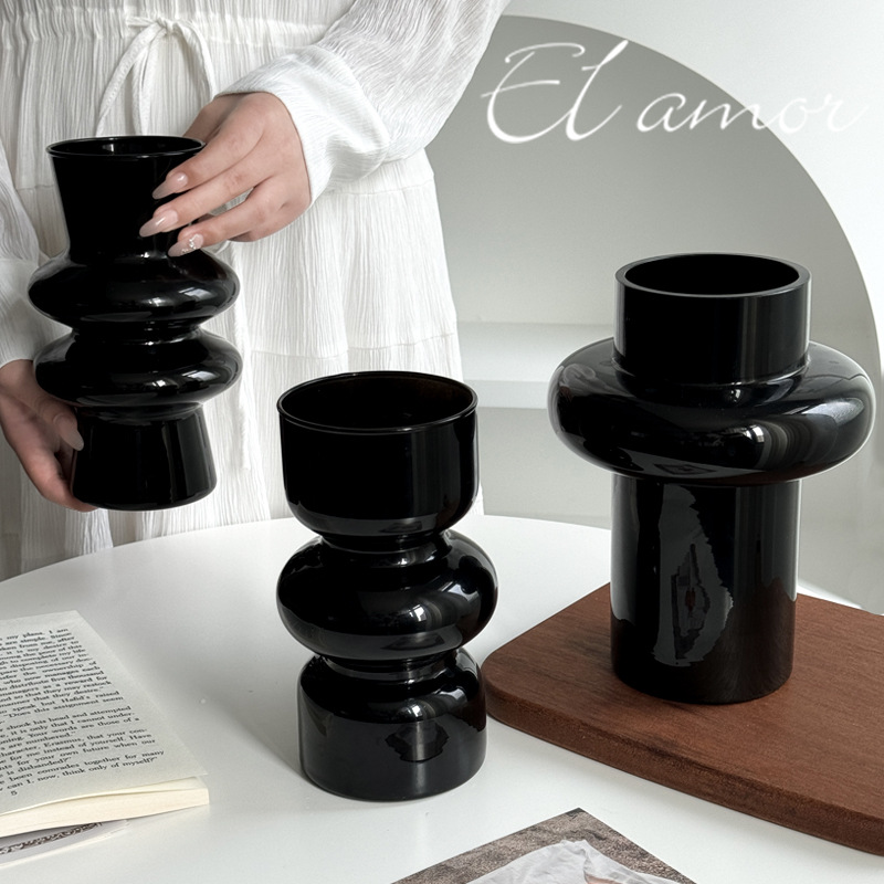 검은색 꽃병, 가벼운 럭셔리, 틈새시장, 거실 꽃꽂이, 인스 스타일, 복고풍 유리, 중세 수경 크리에이티브 장식품