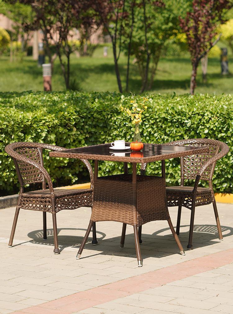발코니 작은 테이블과 의자 등나무 모양의 의자 3 피스 세트 조합 세트 야외 레저 커피 테이블 테이블 및 의자 안뜰 방수 등받이 의자