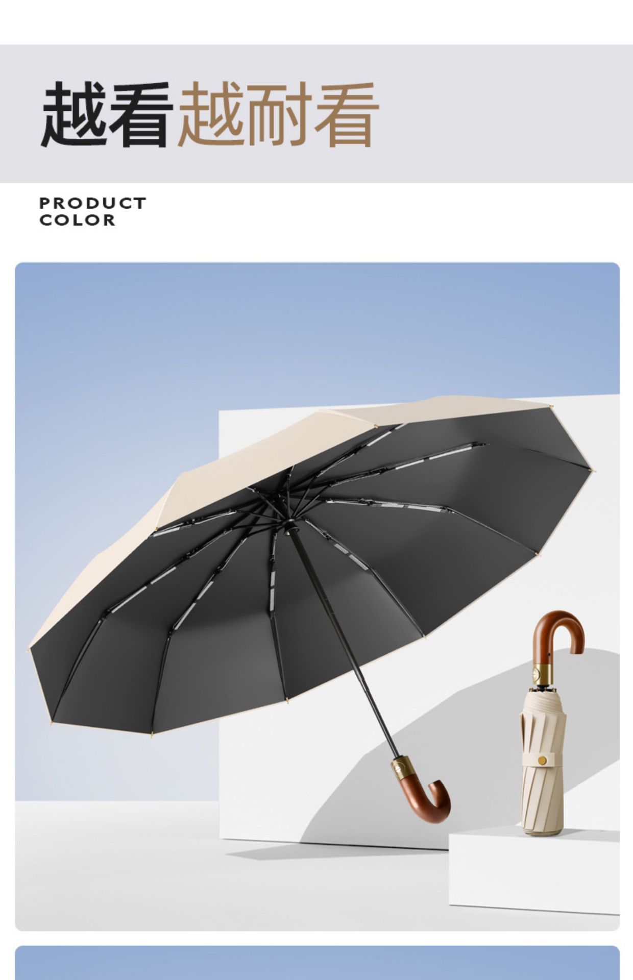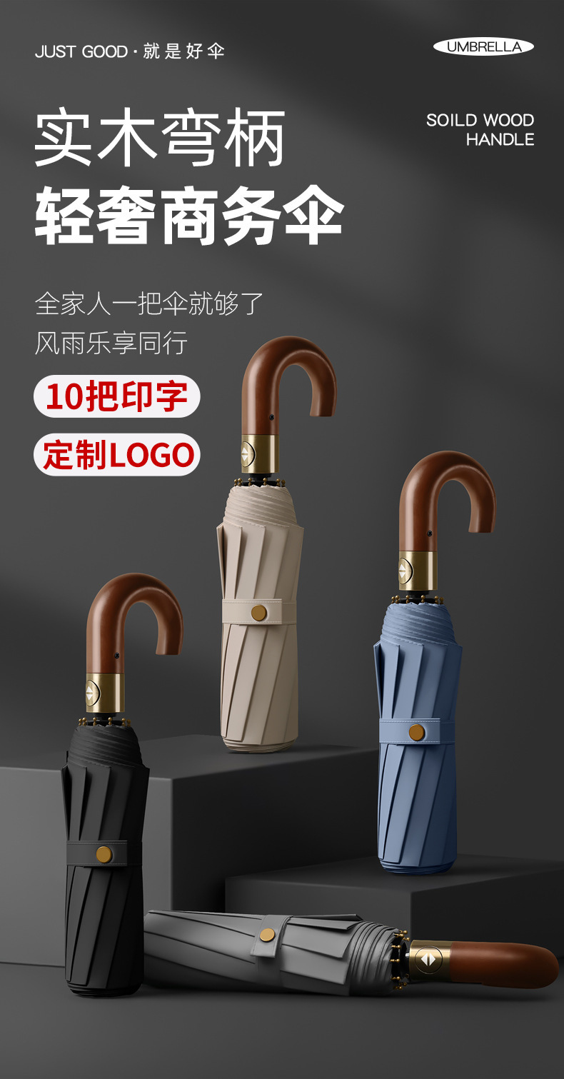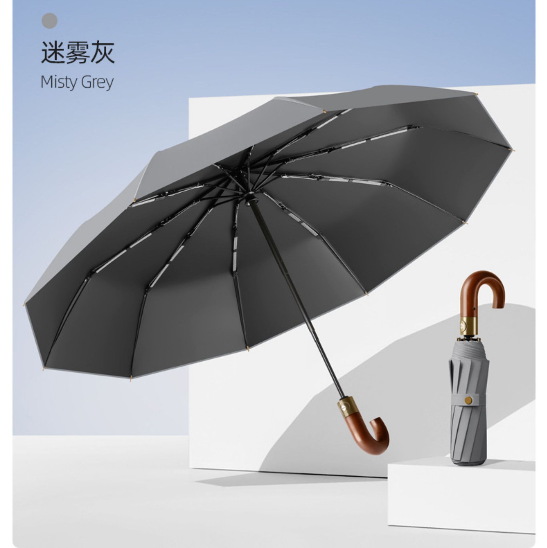 우산 맞춤 로고 자동 우산 나무 손잡이 각인 10단 강화 고급 선물용 우산 맞춤 제작 후크 접이식 우산