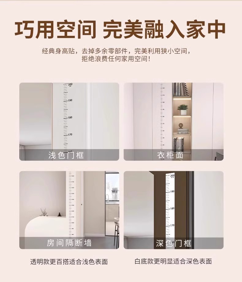 높이 측정 벽 스티커 투명한 높이 스티커 이동식 벽없는 높이 측정 인공물 어린이를위한 정확한 높이 통치자스토어 가기