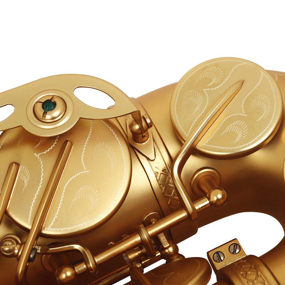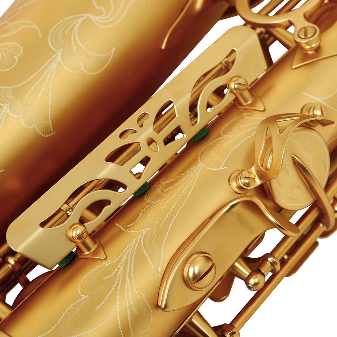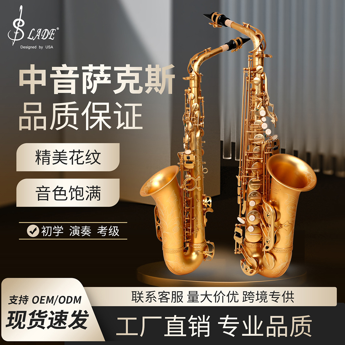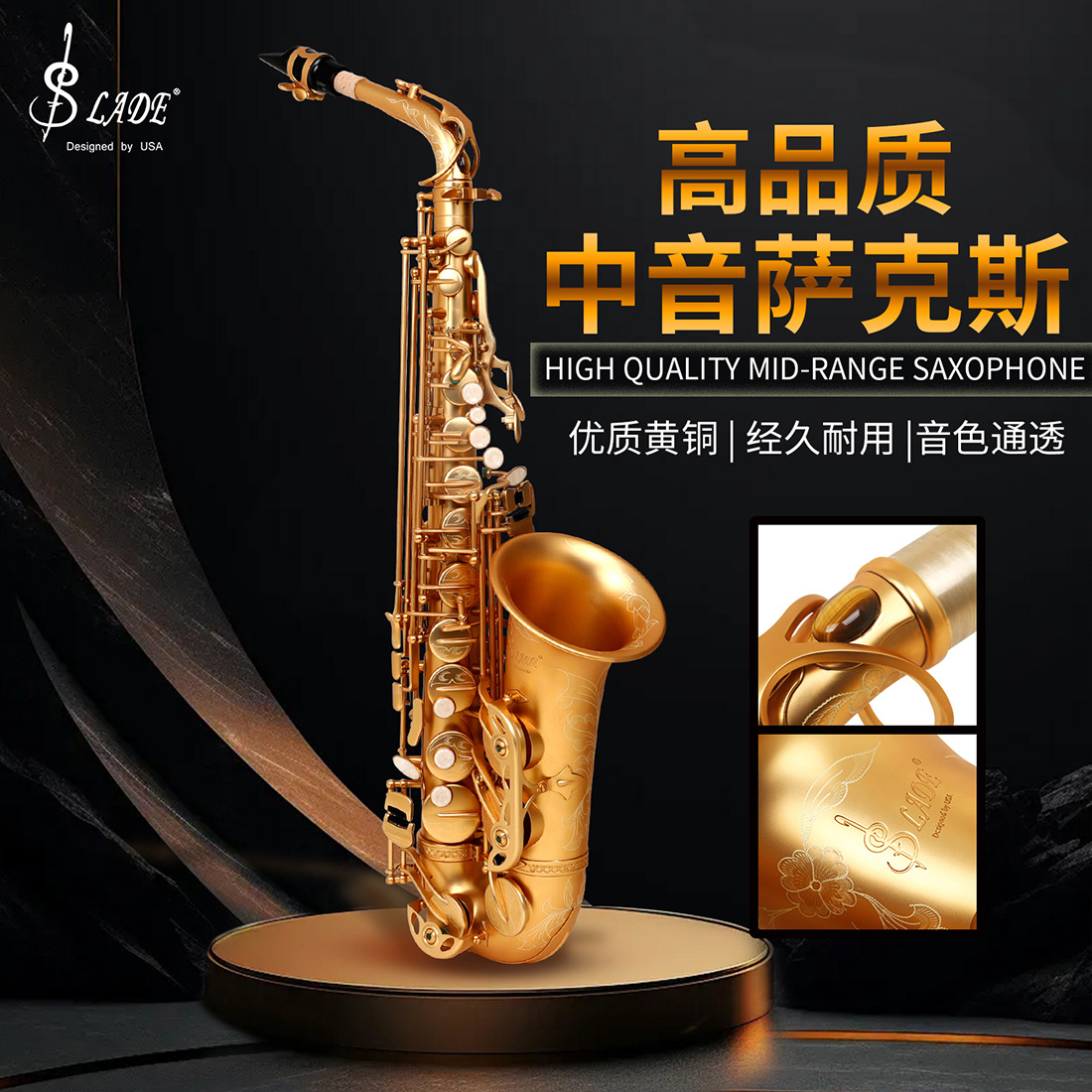 用途卖点:看不见的匠心细节,整个管体跟键型设计均采用法国技术,管体流畅 键型结构合理,吹奏顺畅 声音通透!音色异常通透酥麻跟普通的萨克斯比较 ,音色通透酥麻;采用工匠手工雕花,这样的雕花与机器或激光雕花有很大不同,立体感更强。白贝扣 手感舒适演奏顺畅手指长按不疲劳