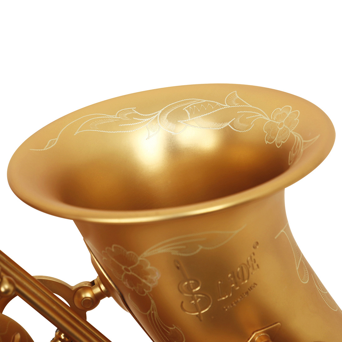 产品名称:SLADE雷德中音萨克斯降E调黄铜管体白贝壳按键磨砂工艺金色精品(SLADE银色拉丝抗压盒款+标配)